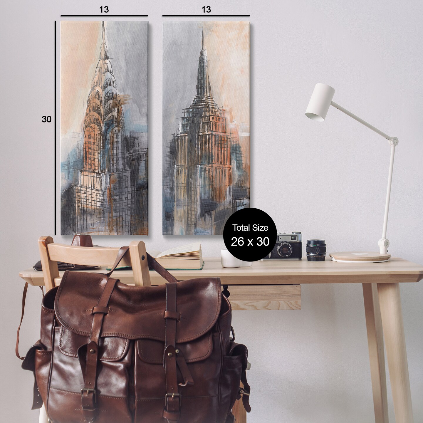 Stupell Industries City Architecture Sketches 2pc Canvas Wall Art Set Design by Ethan Harper