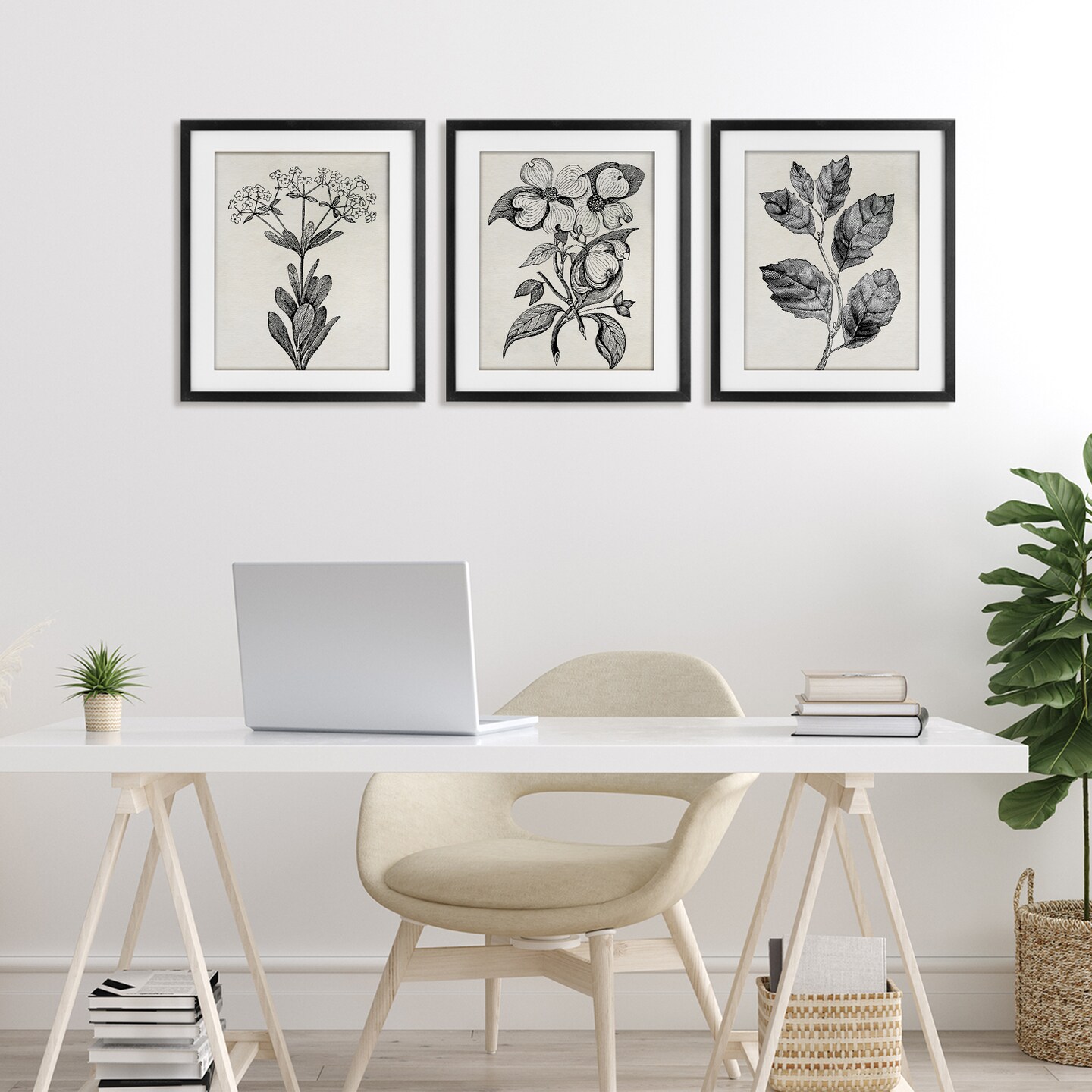 Stupell Industries Classic Natural Botanicals 3pc Framed Print Under Glass Set, design by Karen Smith