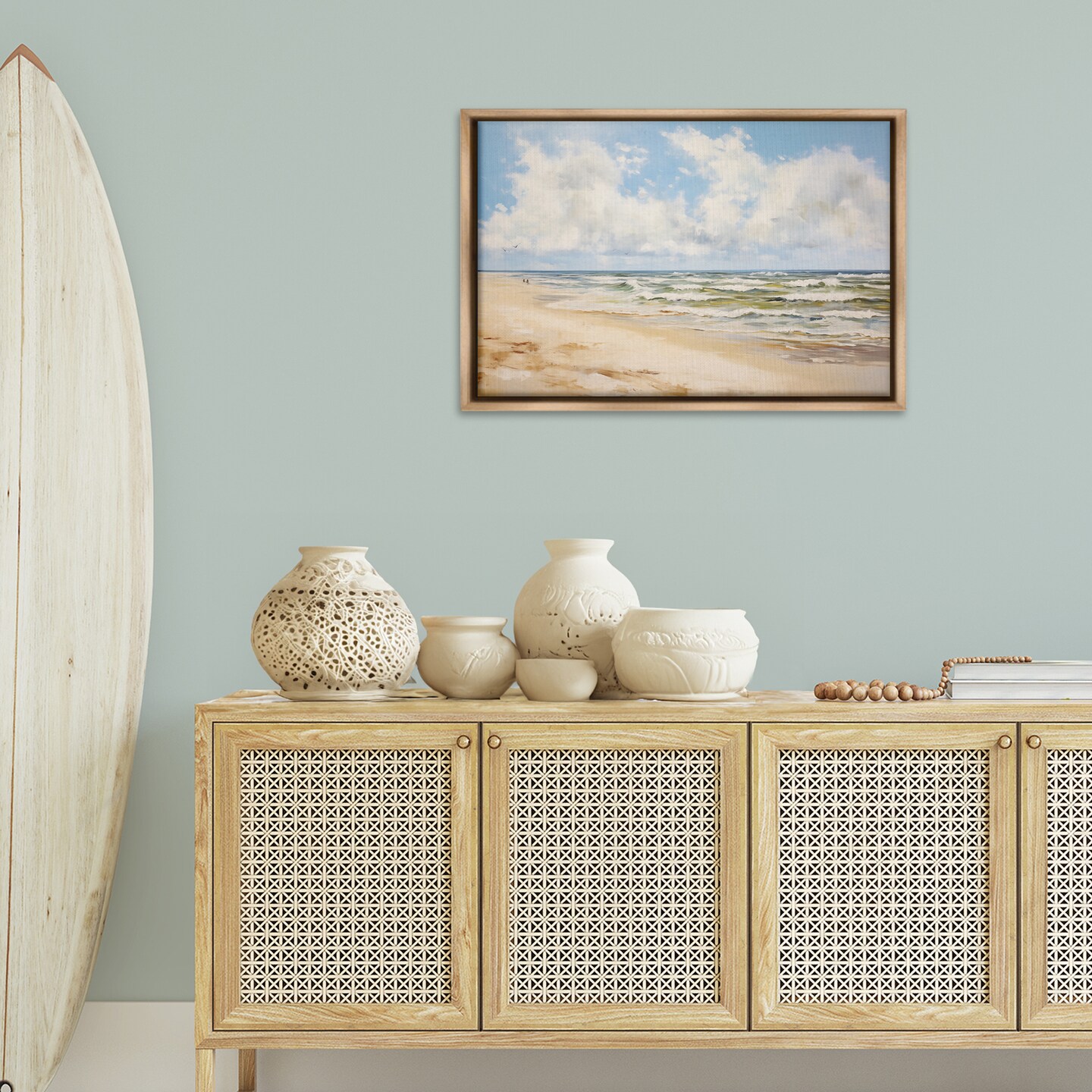 Stupell Industries Cloudy Summer Beach Floater Framed Canvas Wall Art Design by LSR Design Studio