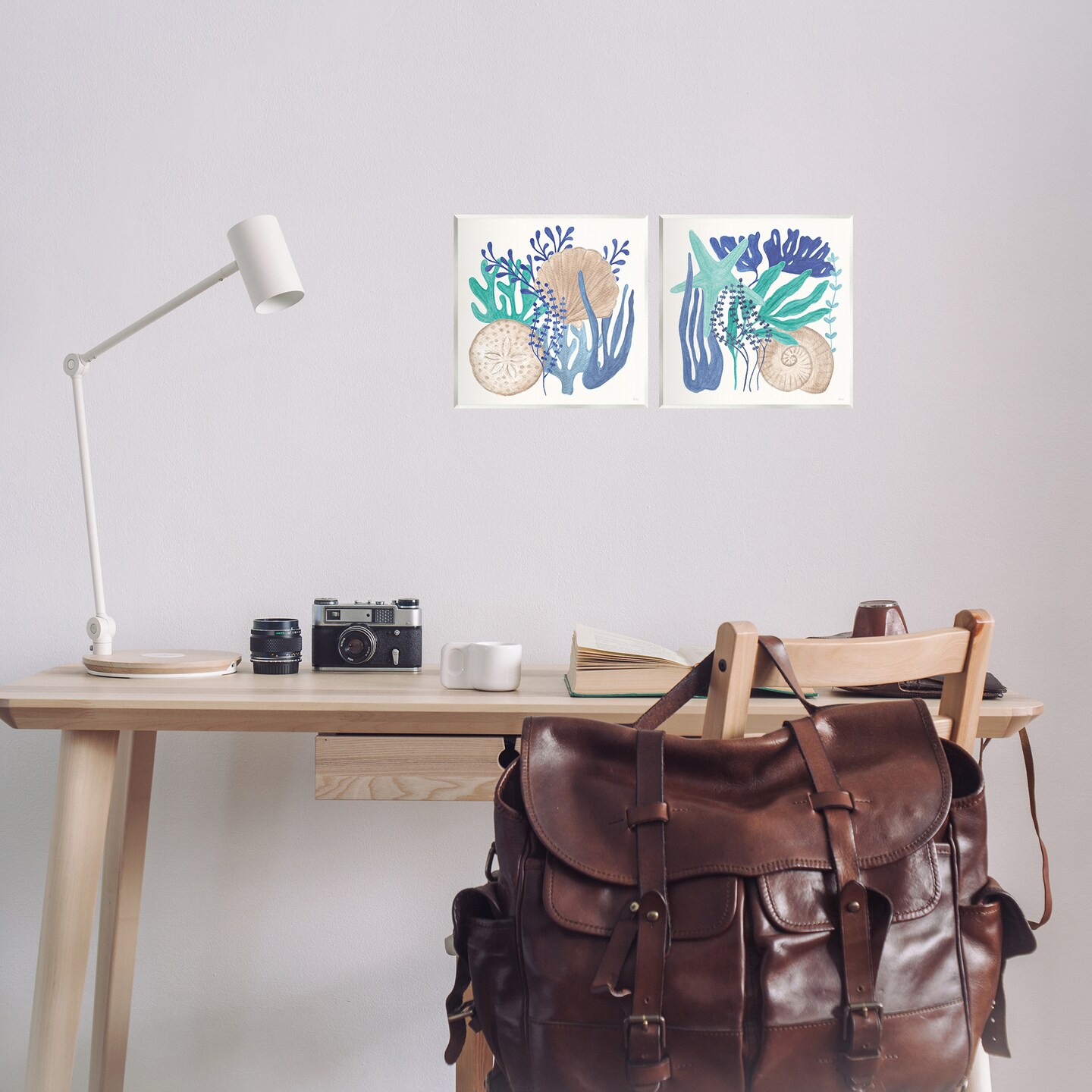 Stupell Industries Coastal Coral & Seashells 2pc Wall Plaque Art Set Design by Veronique Charron