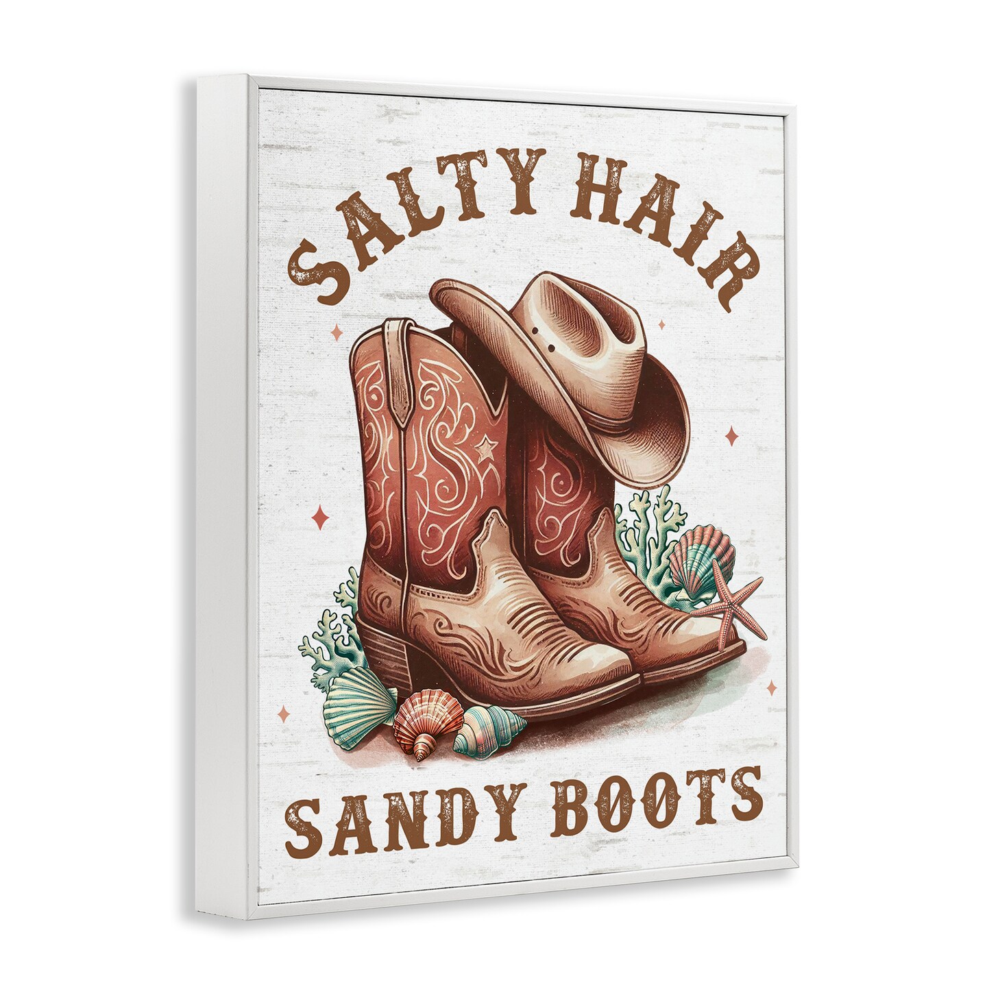 Stupell Industries Coastal Cowgirl Boots Framed Giclee Wall Art Design by Lettered and Lined