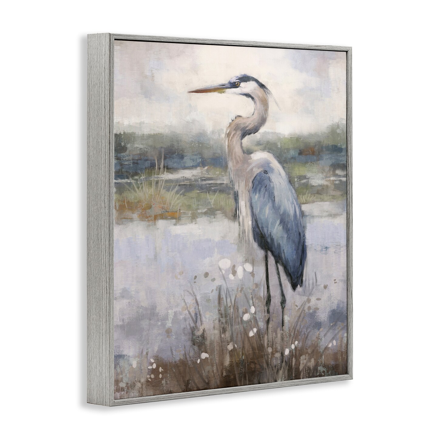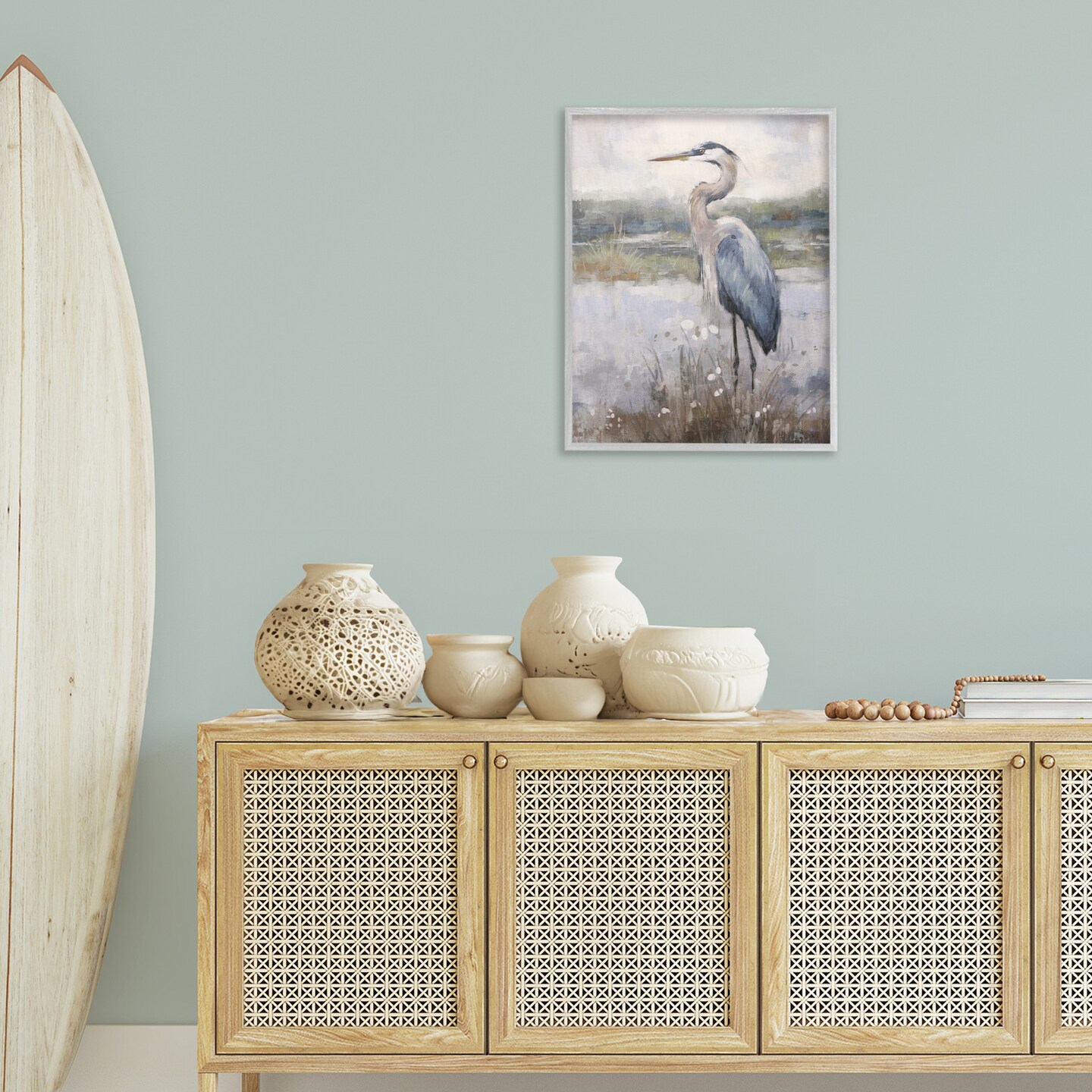 Stupell Industries Coastal Heron on Riverbank Framed Giclee Wall Art Design by Nina Blue