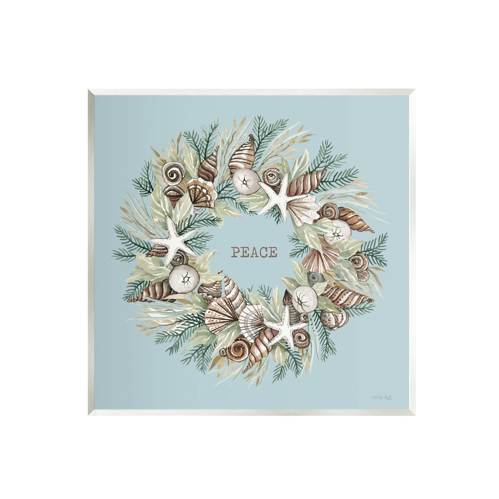 Stupell Industries Coastal Holiday Peace Wreath Wall Art