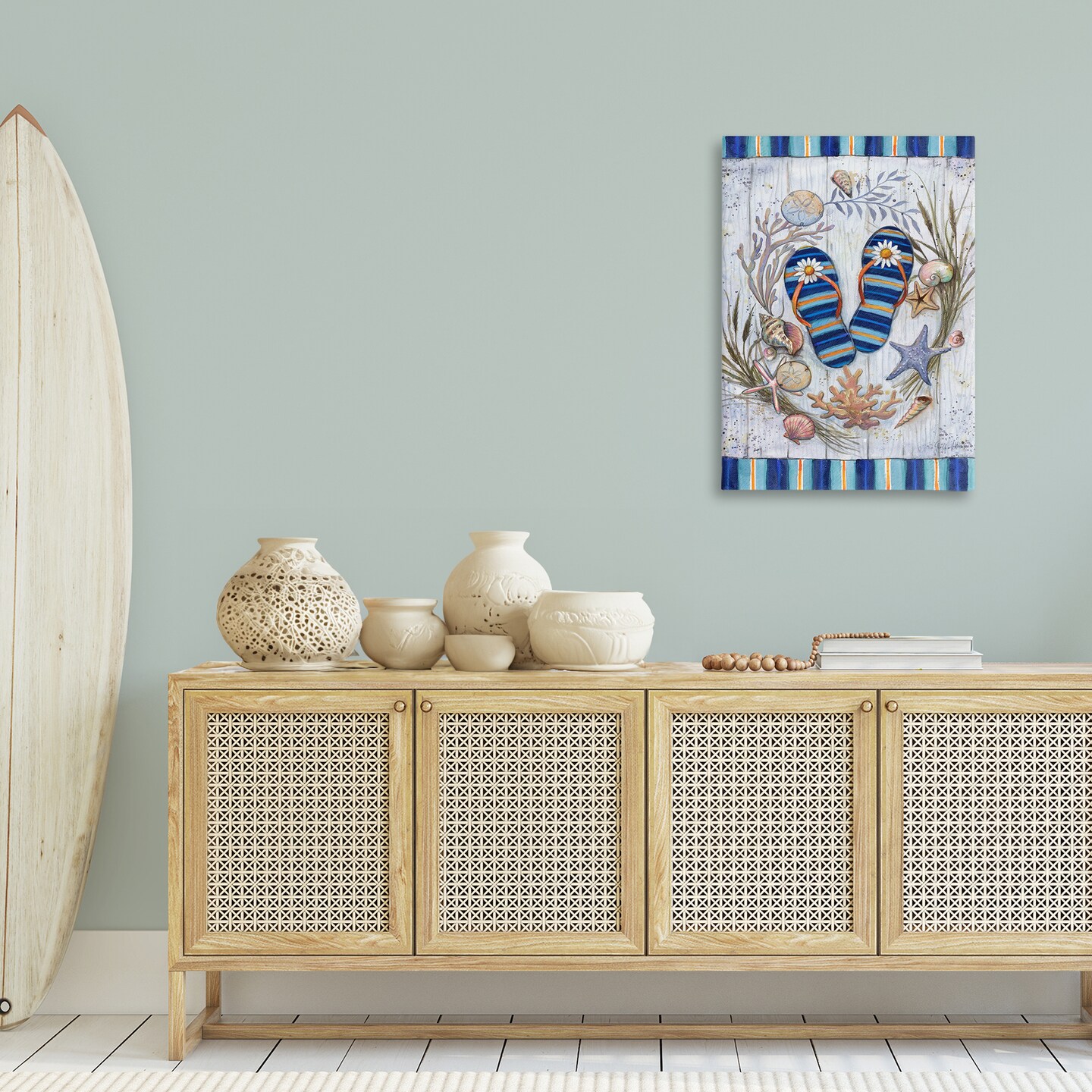 Stupell Industries Coastal Wreath & Flip Flops Canvas Wall Art Design by Geoff Allen