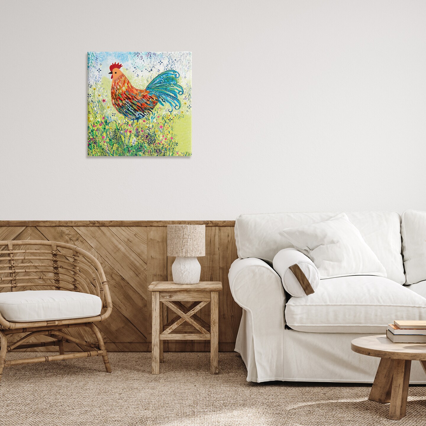 Stupell Industries Cockerel Rooster in Colorful Garden Canvas, design by Clare Tupper