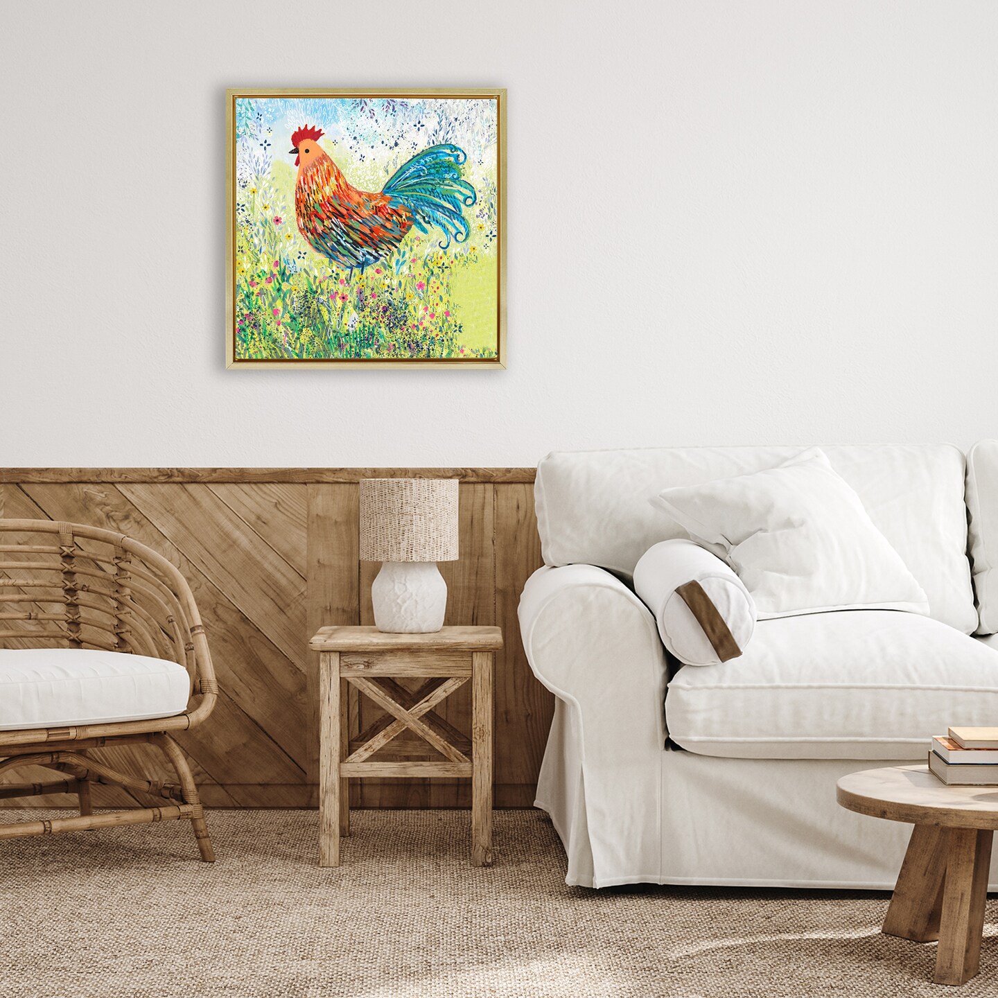 Stupell Industries Cockerel Rooster in Colorful Garden Floating Frame, design by Clare Tupper