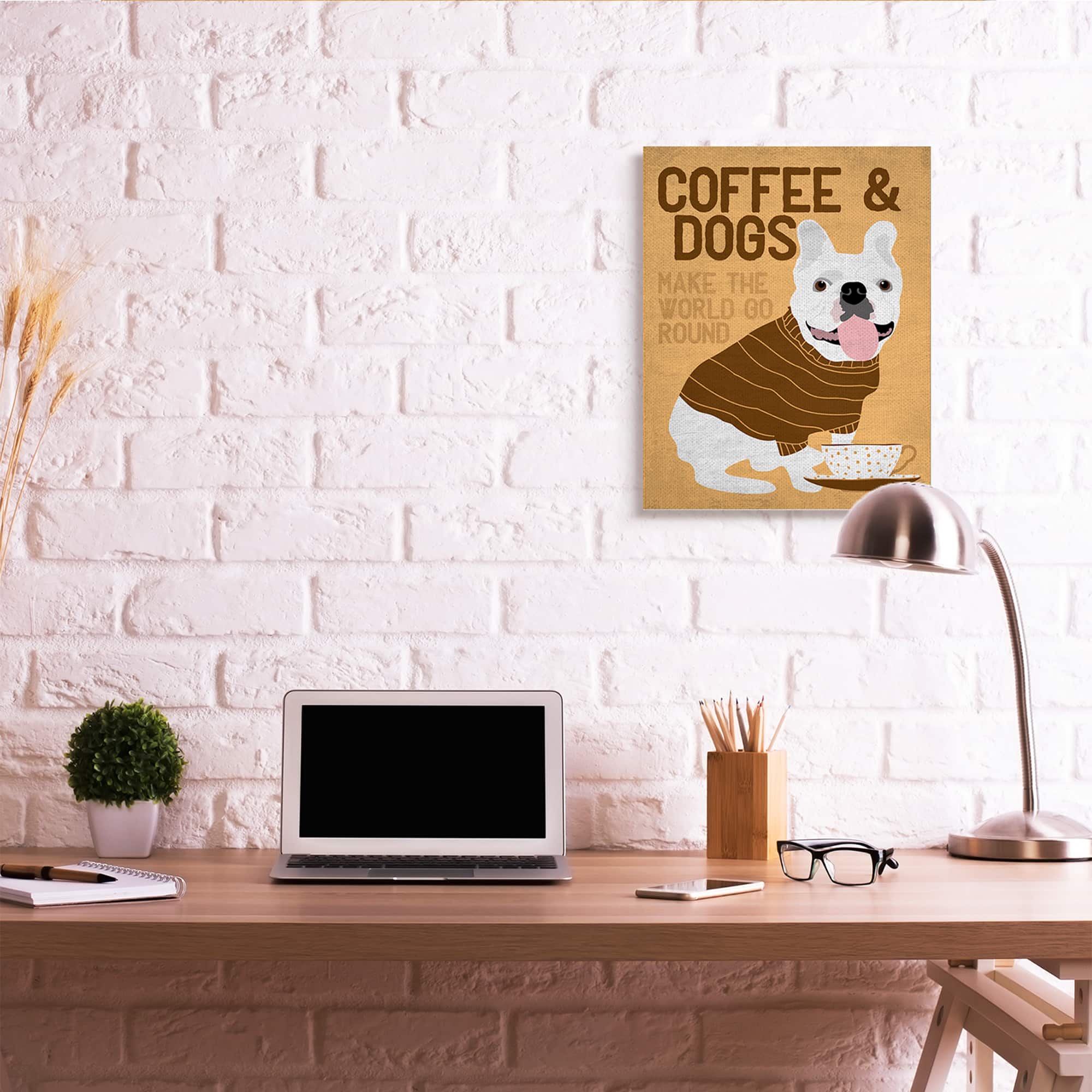 Stupell Industries Coffee and Dogs Phrase French Bulldog Café Pet Canvas Wall Art