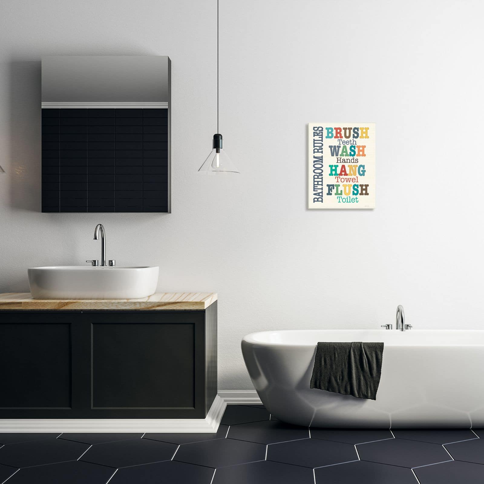 Stupell Industries Colorful Bathroom Rules Typog Wood Wall Plaque