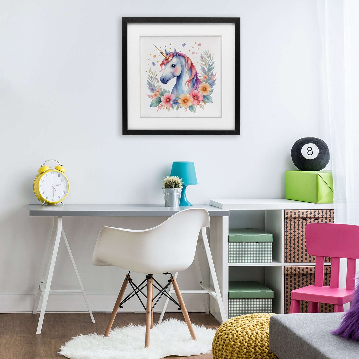 Stupell Industries Colorful Unicorn with Flowers Framed Print Under Glass, design by Creative Studio