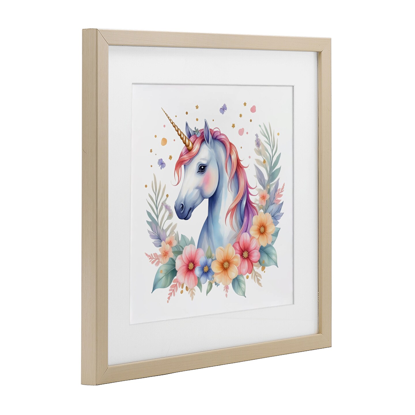 Stupell Industries Colorful Unicorn with Flowers Framed Print Under Glass, design by Creative Studio