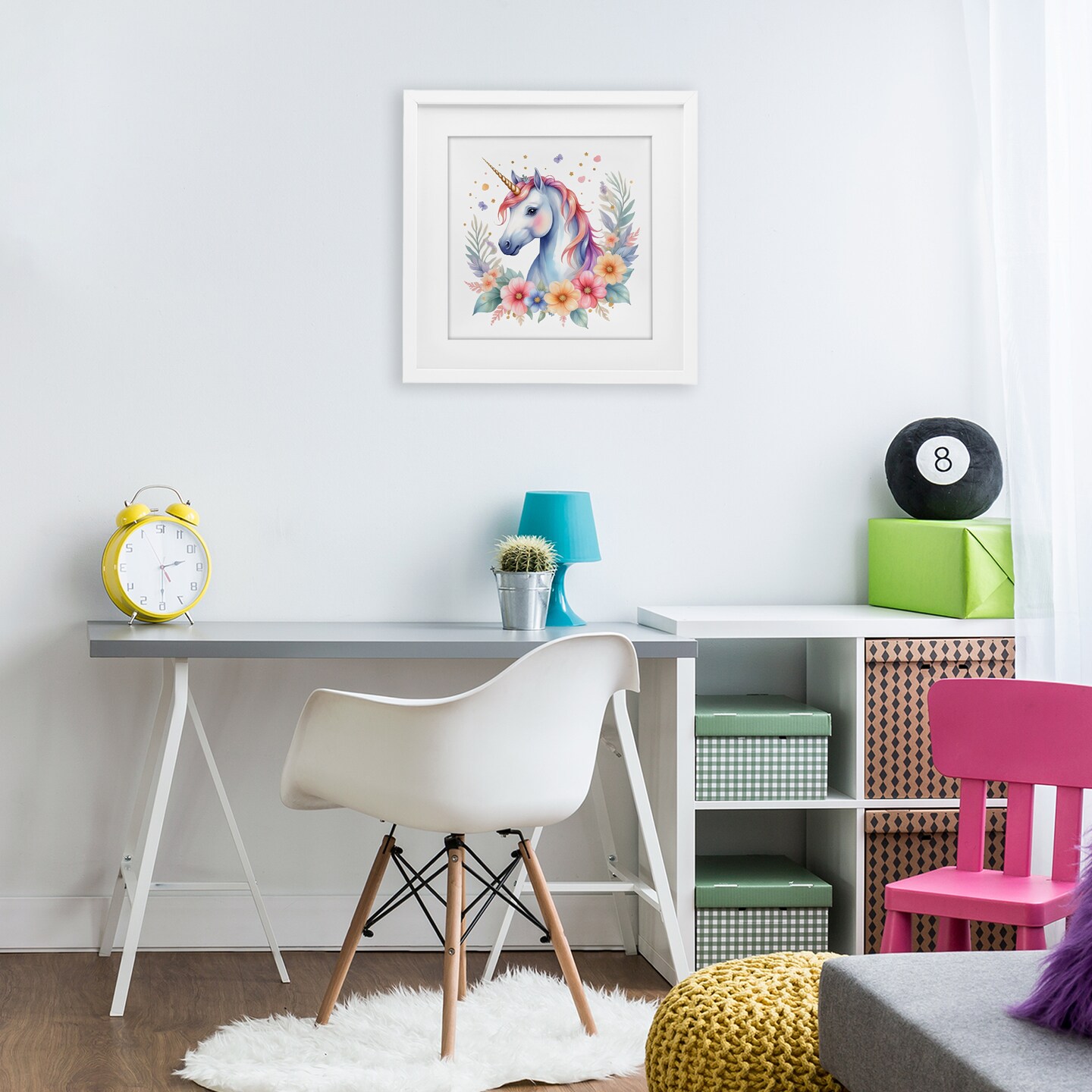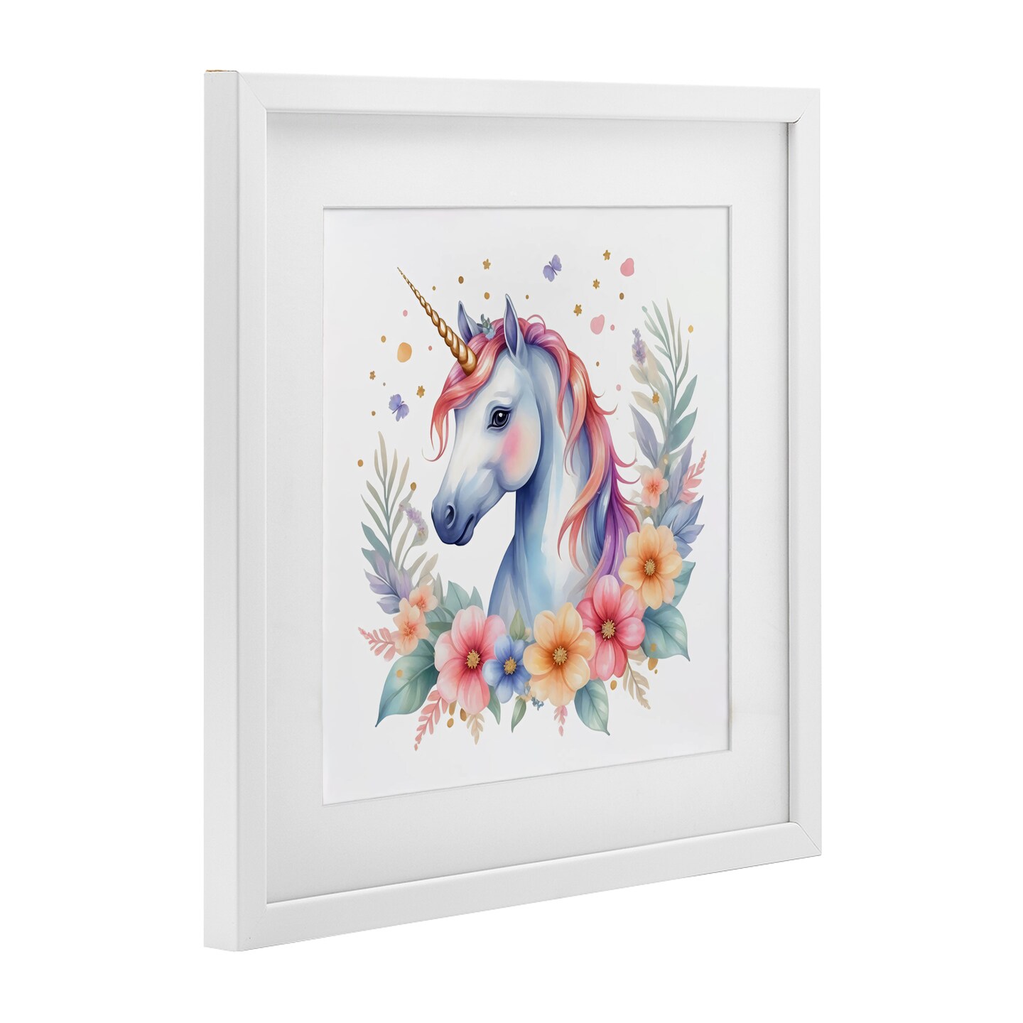 Stupell Industries Colorful Unicorn with Flowers Framed Print Under Glass, design by Creative Studio