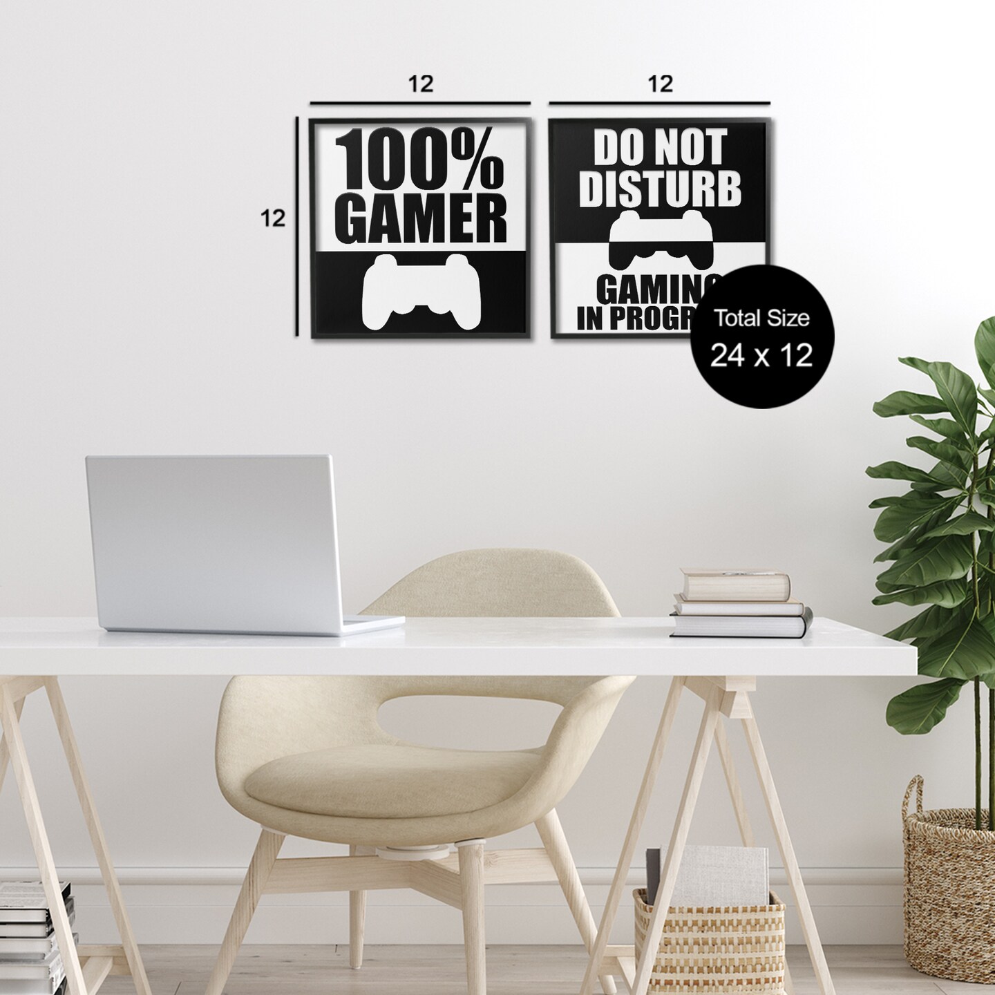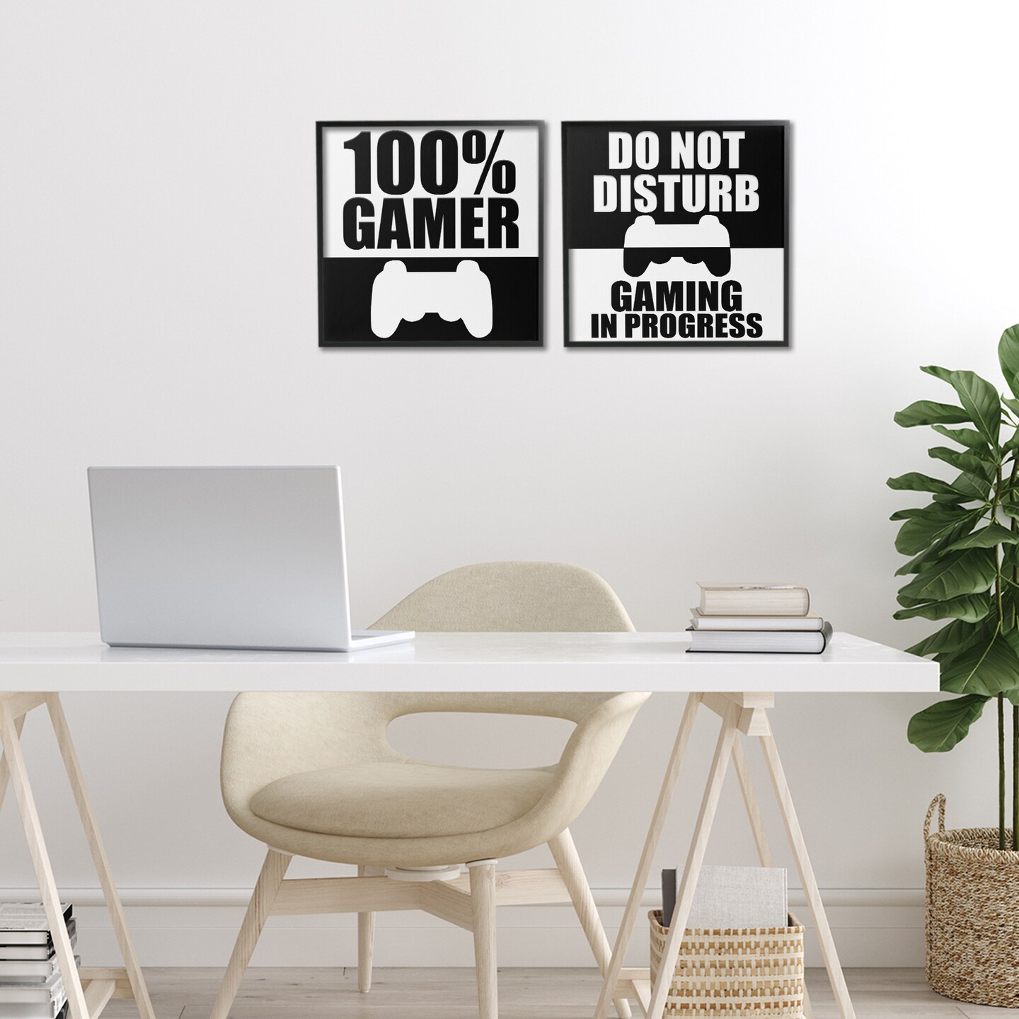 Stupell Industries Competitive Gamer Black & White 2pc Framed Giclee Set, design by Kim Allen