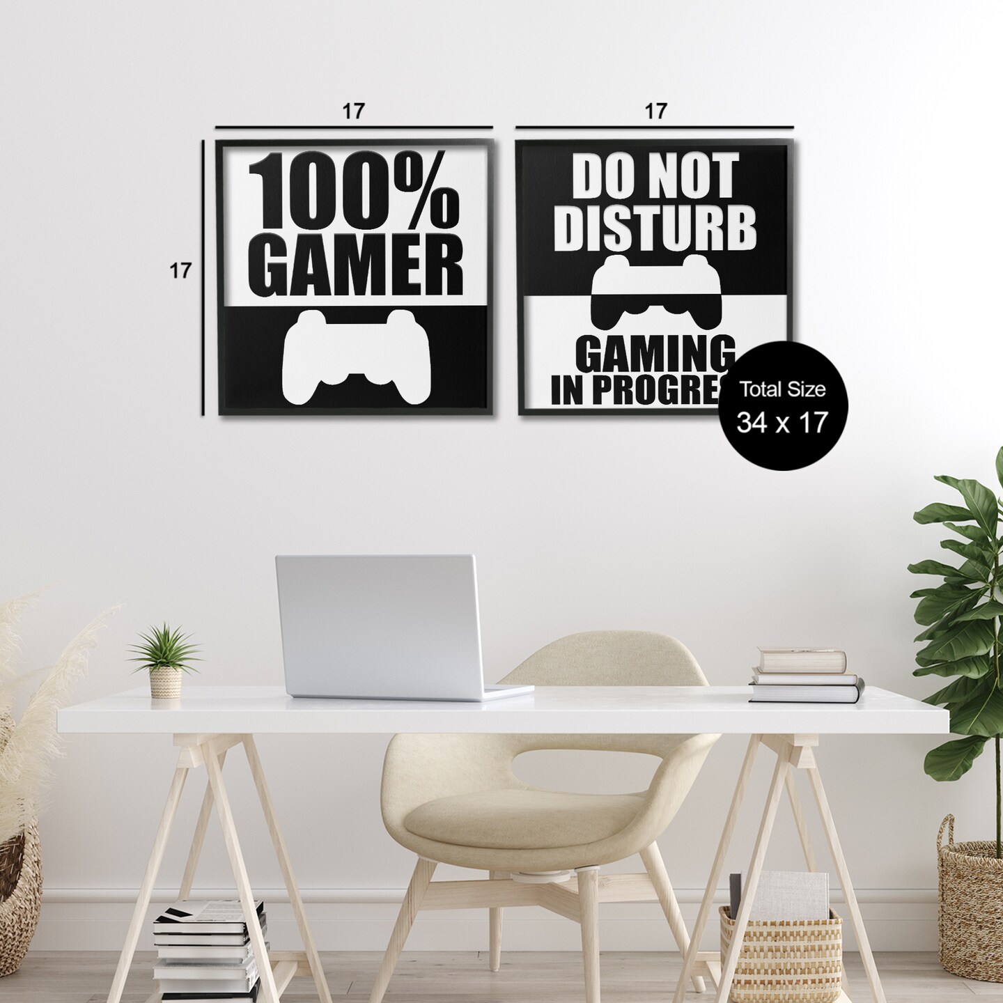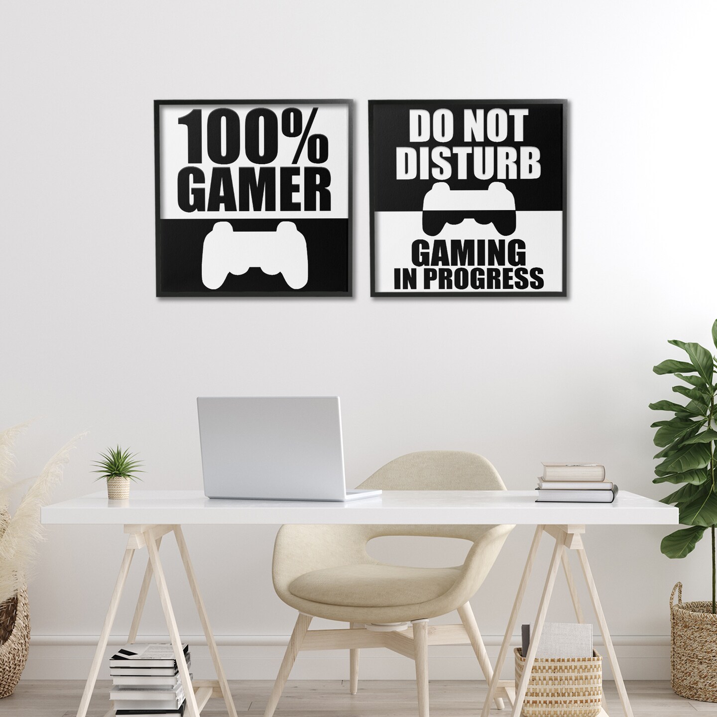 Stupell Industries Competitive Gamer Black & White 2pc Framed Giclee Set, design by Kim Allen