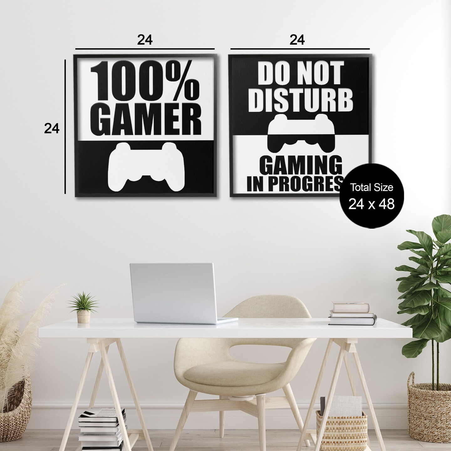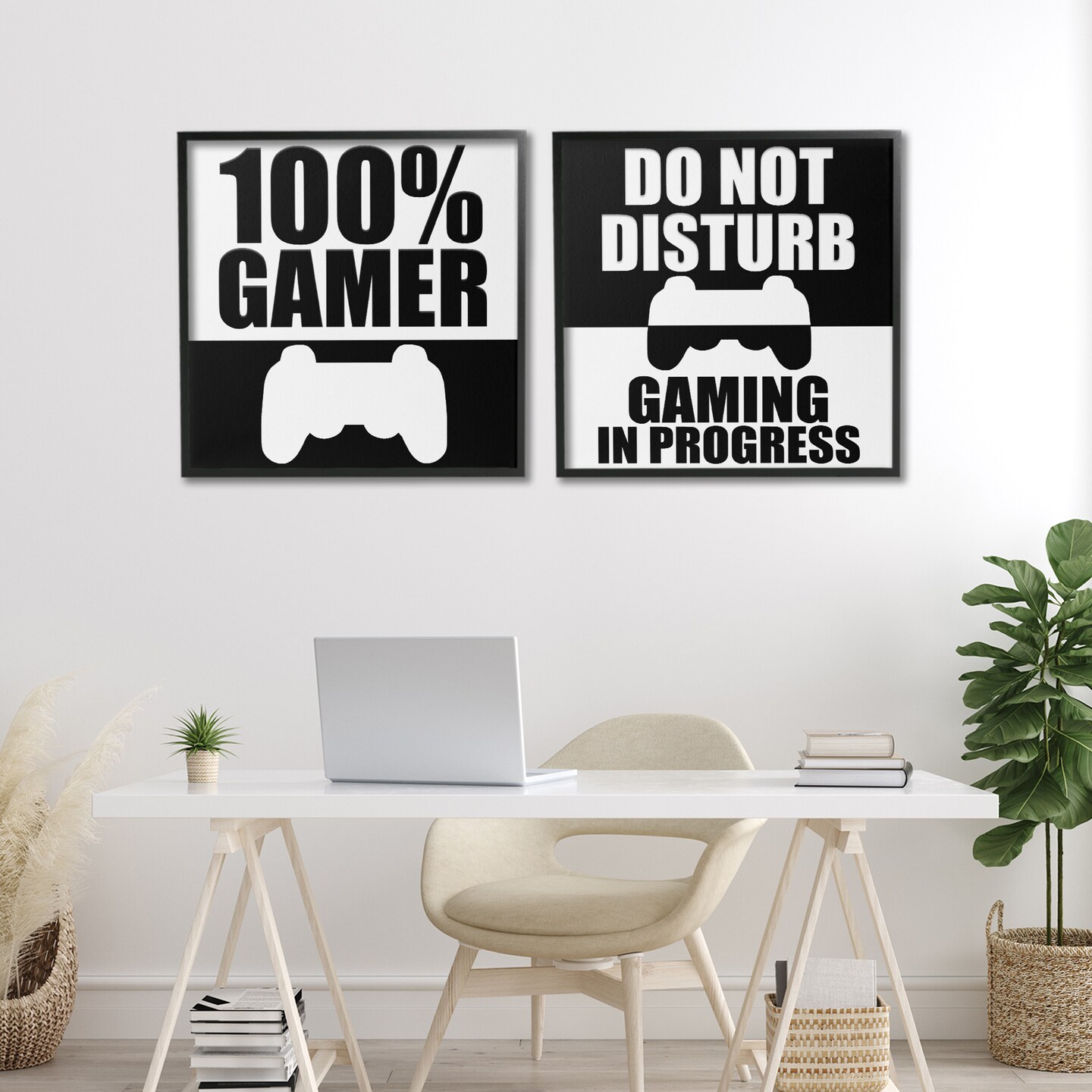 Stupell Industries Competitive Gamer Black & White 2pc Framed Giclee Set, design by Kim Allen