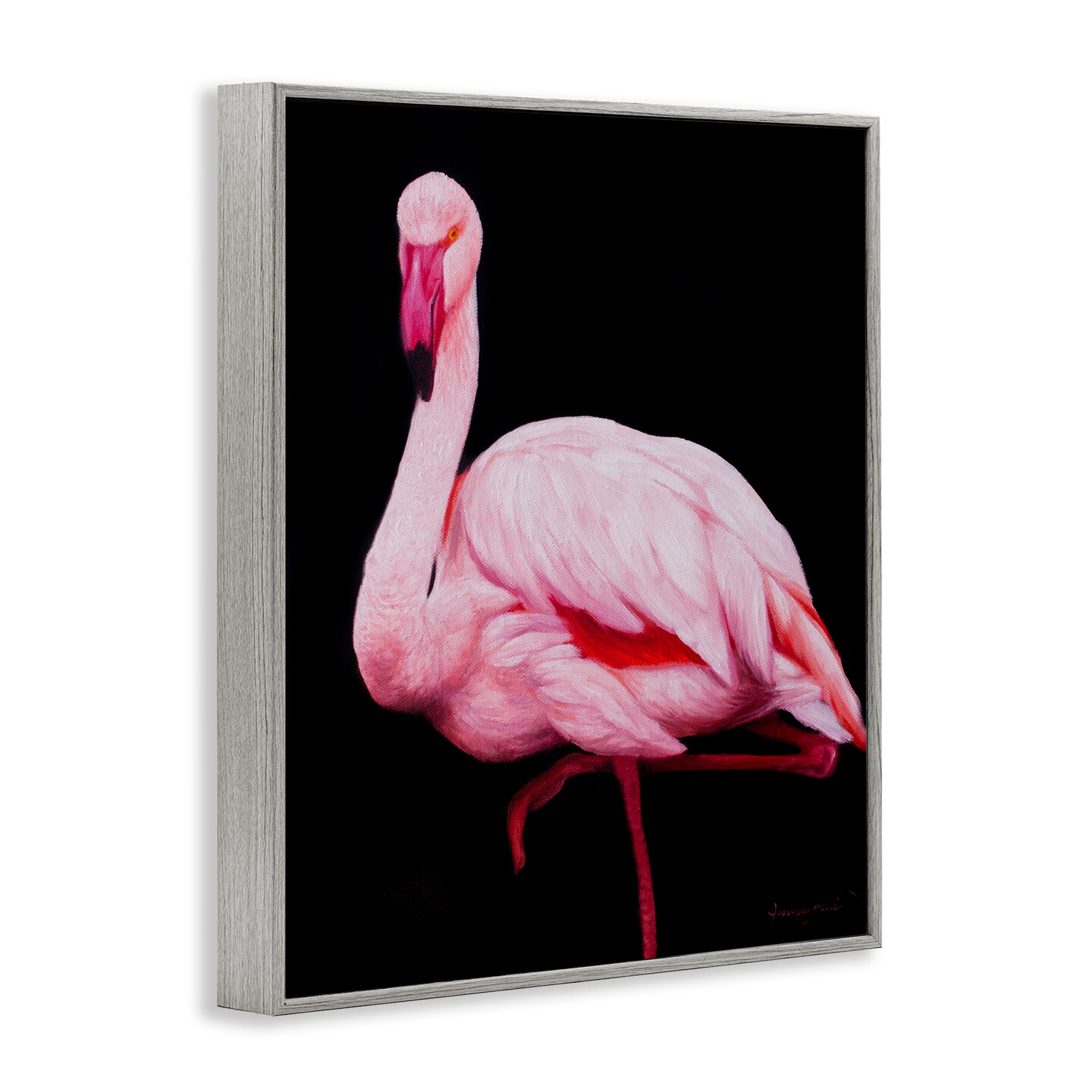 Stupell Industries Contrasting Flamingo on Black Framed Giclee, design by James Corwin