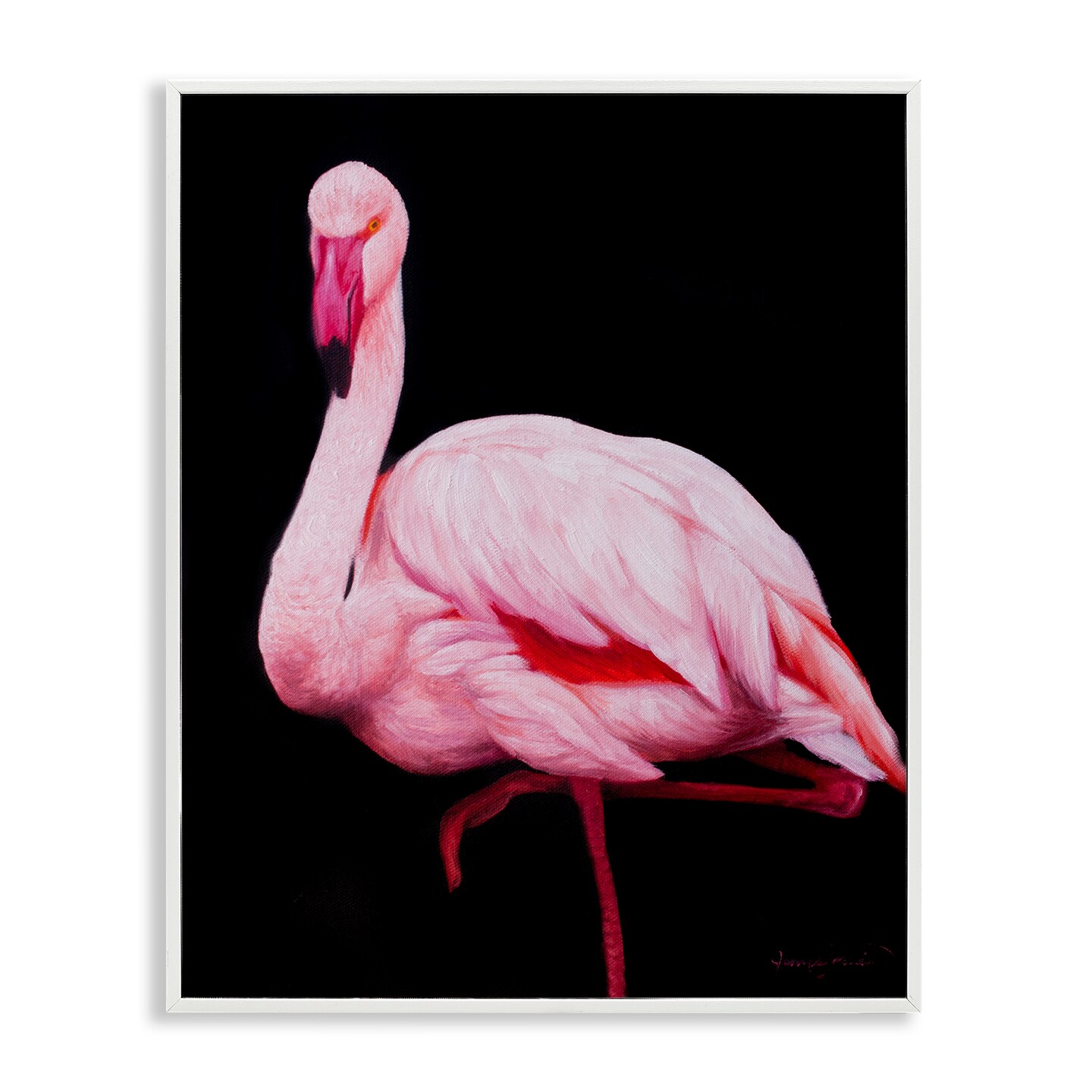 Stupell Industries Contrasting Flamingo on Black Framed Giclee, design by James Corwin