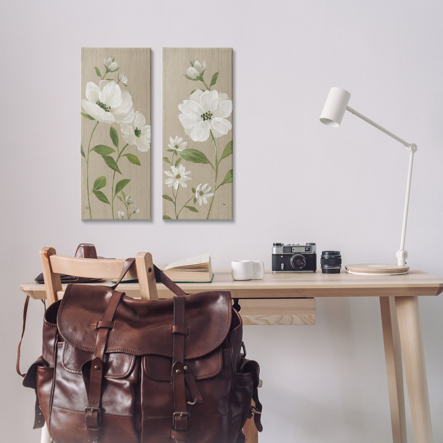 Stupell Industries Cottage Blossoms on Beige 2pc Canvas Wall Art Set Design by Nan