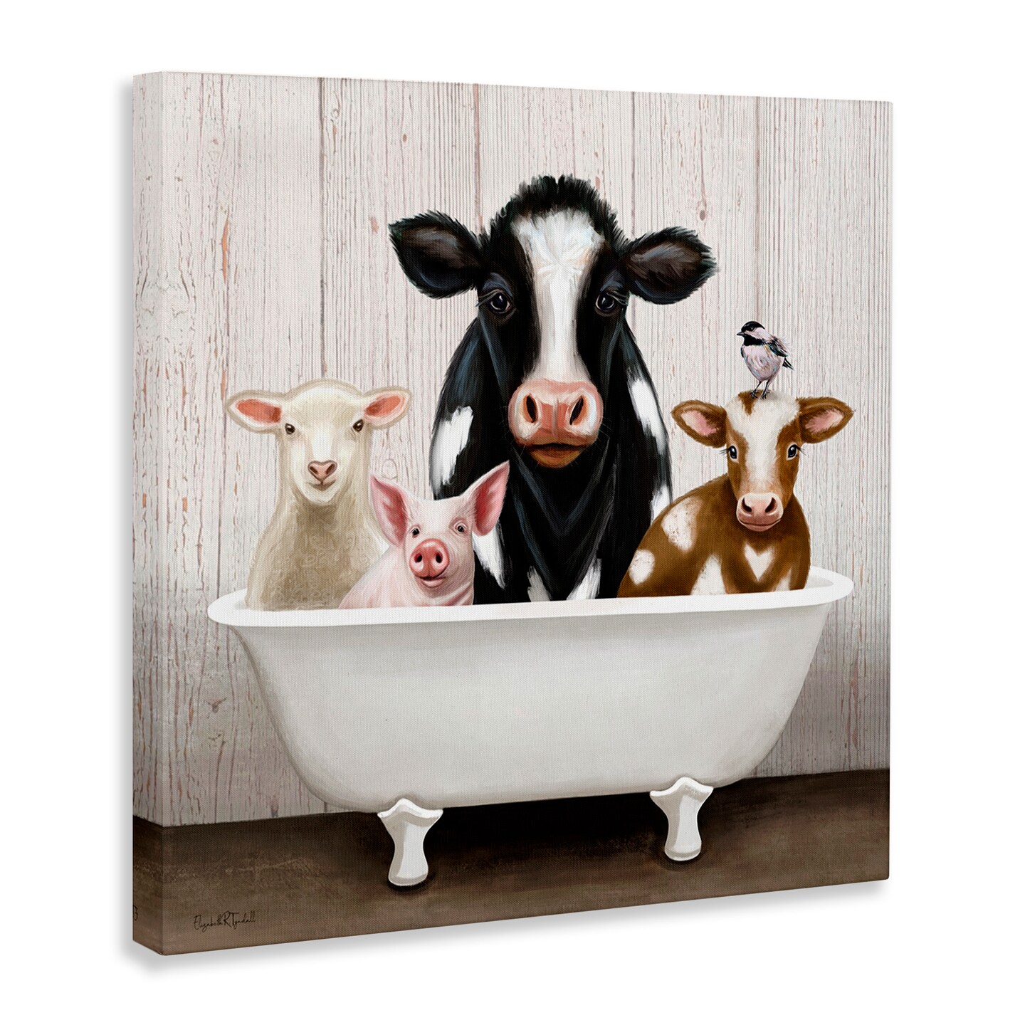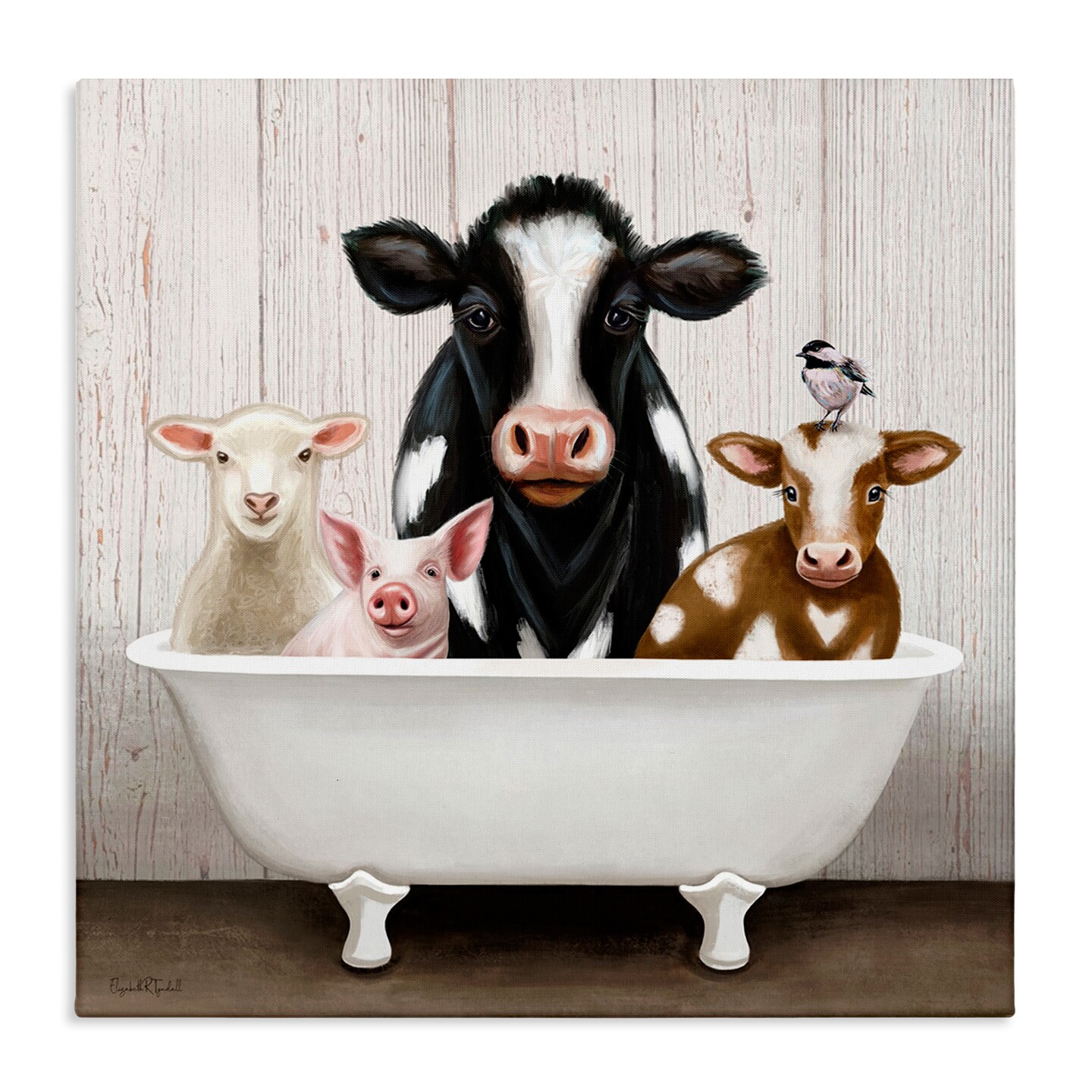 Stupell Industries Country Animals Farmhouse Claw Bathtub Canvas Wall Art