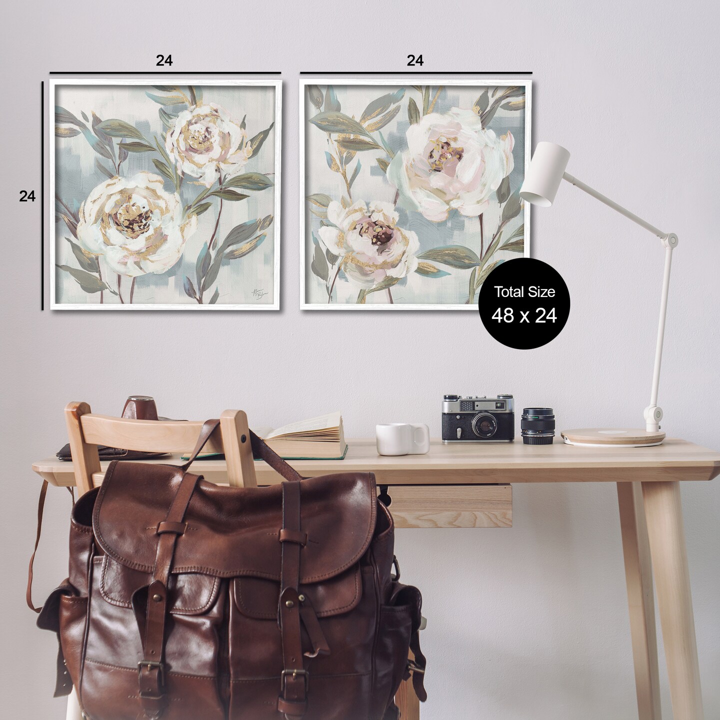 Stupell Industries Country Antique Blossoms 2pc Framed Giclee Wall Art Set Design by Nina Blue