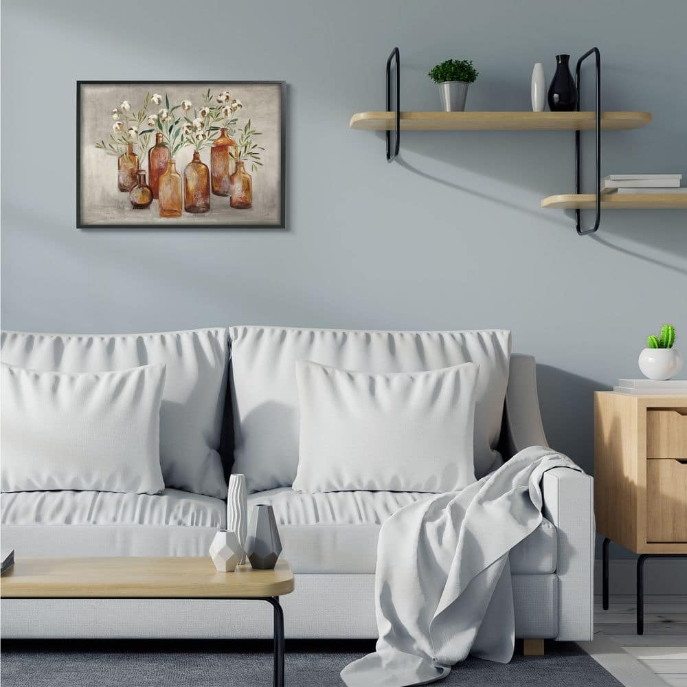 Stupell Industries Country Cotton Flower Stems in Glasses Brown Tan Painting Framed Wall Art