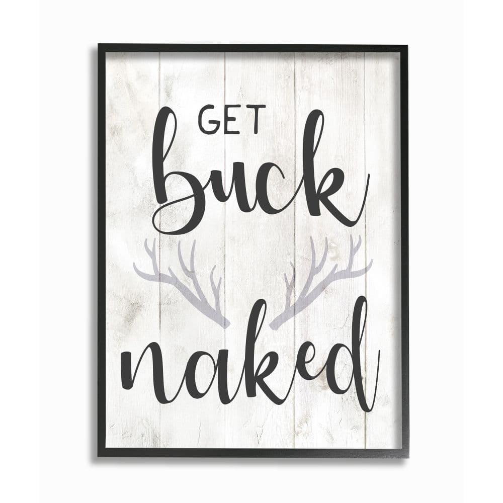 Stupell Industries Country Get Buck Naked Text Design Rustic Antlers Framed Wall Art