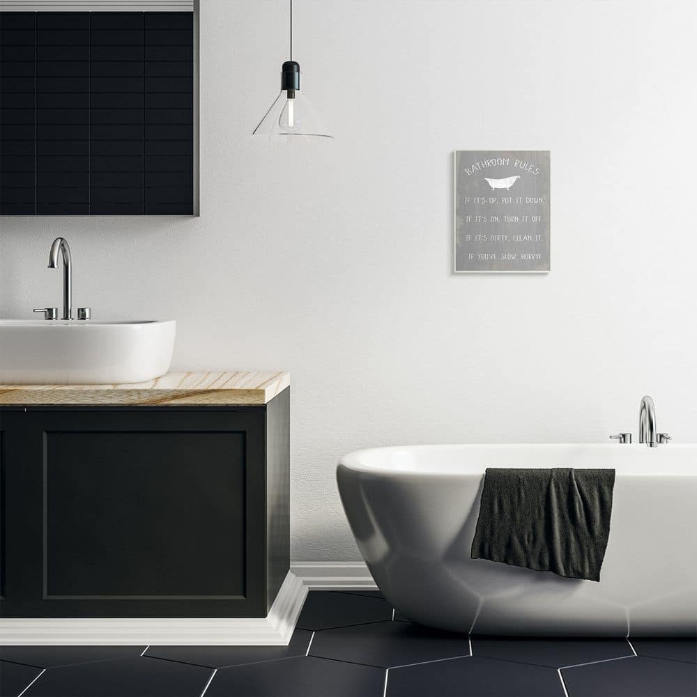 Stupell Industries Countryside Bathroom Rules Sign with Claw Bath Wood Wall Plaque
