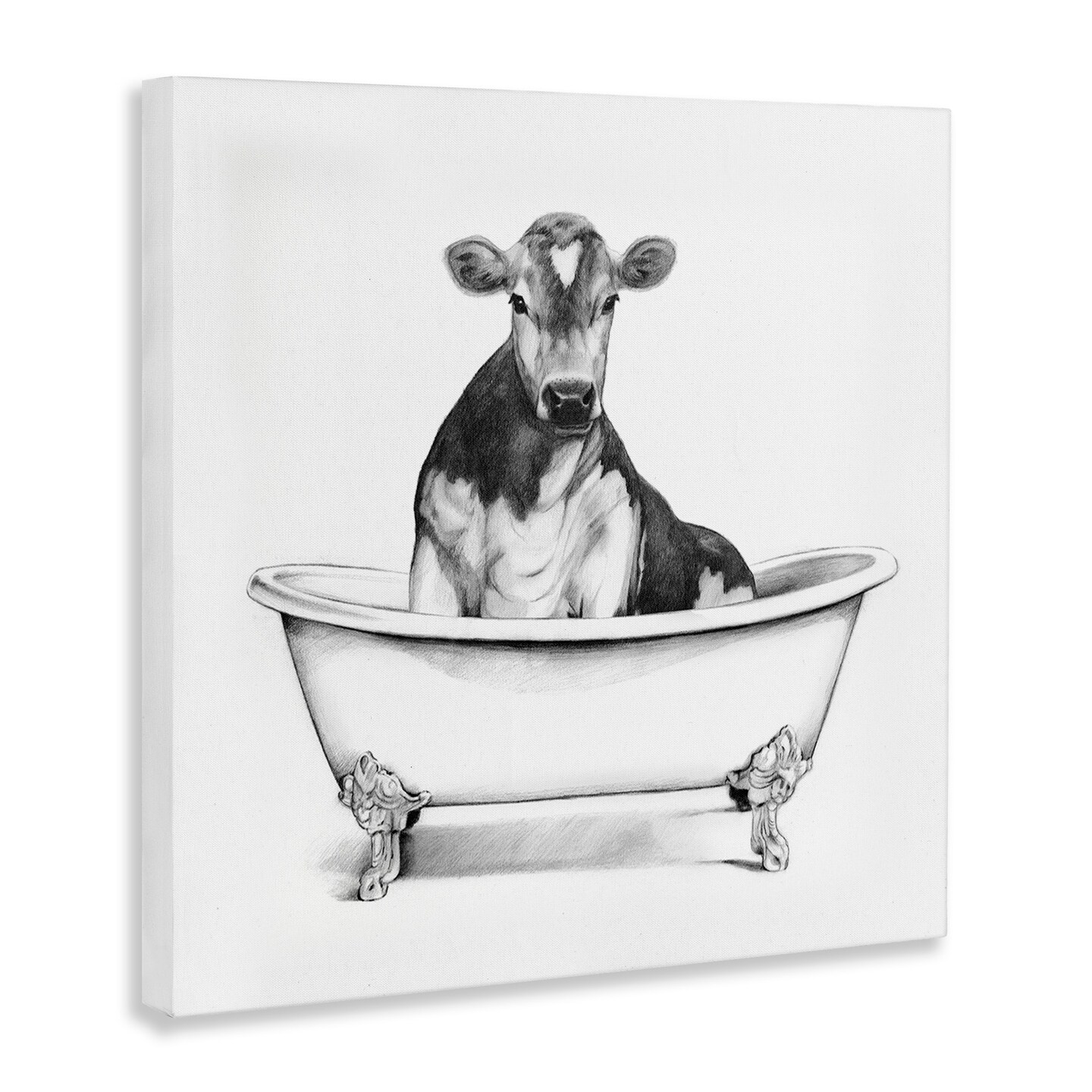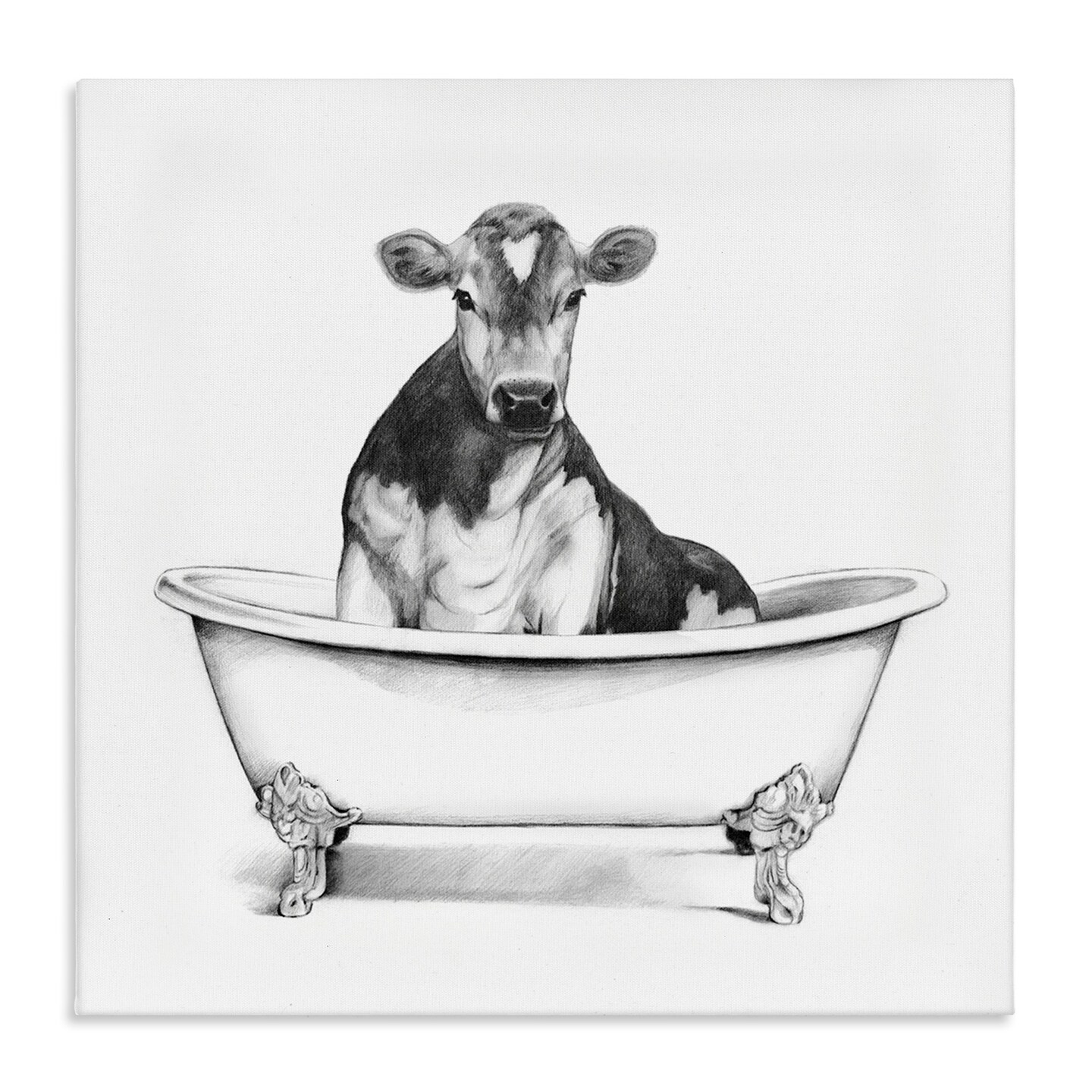 Stupell Industries Cow in Bathtub Sketch Canvas Wall Art