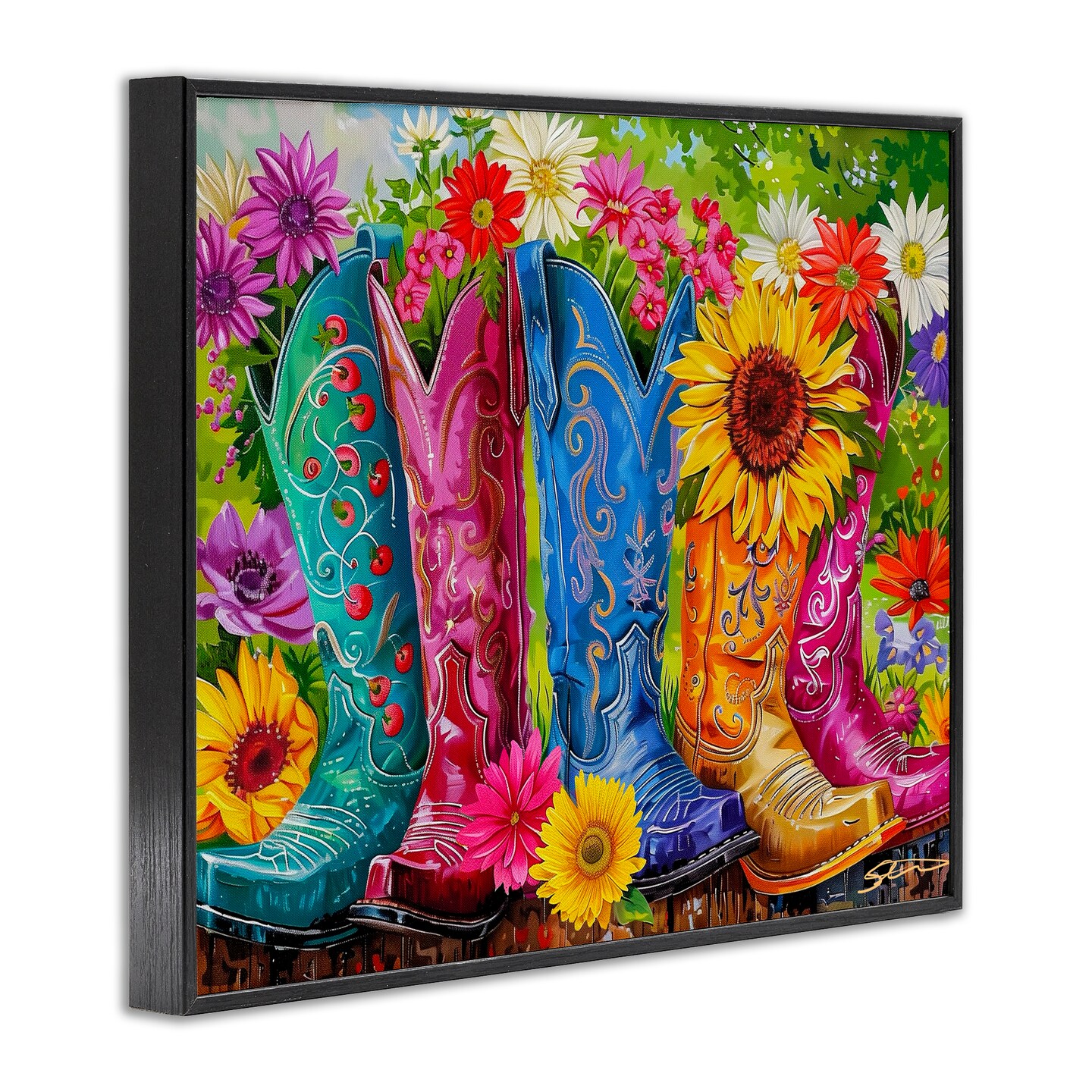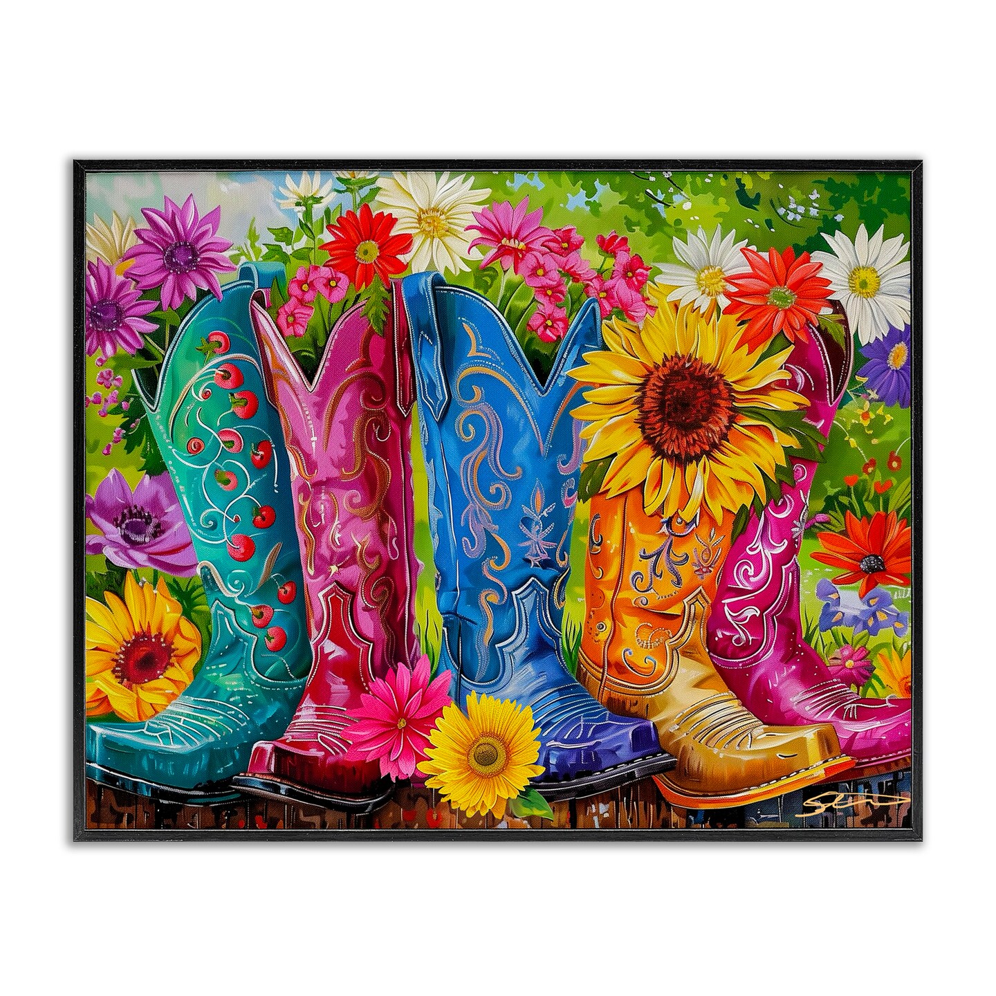 Stupell Industries Cowboy Boots and Sunflowers Framed Giclee, design by Shawna Stewart