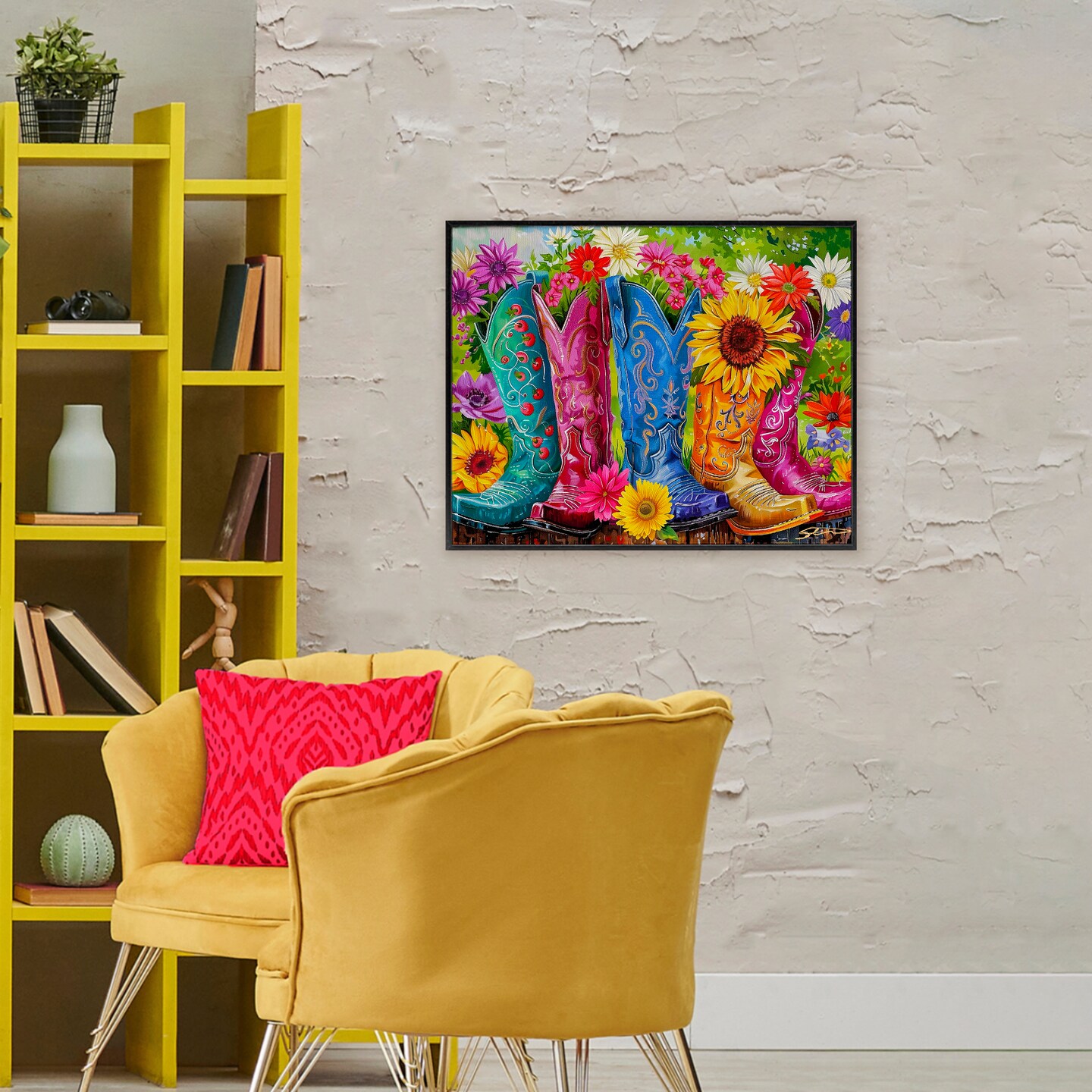 Stupell Industries Cowboy Boots and Sunflowers Framed Giclee, design by Shawna Stewart