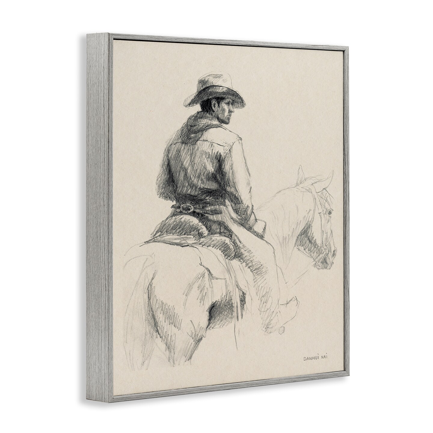 Stupell Industries Cowboy & Horse Sketch Framed Giclee Wall Art Design by Danhui Nai