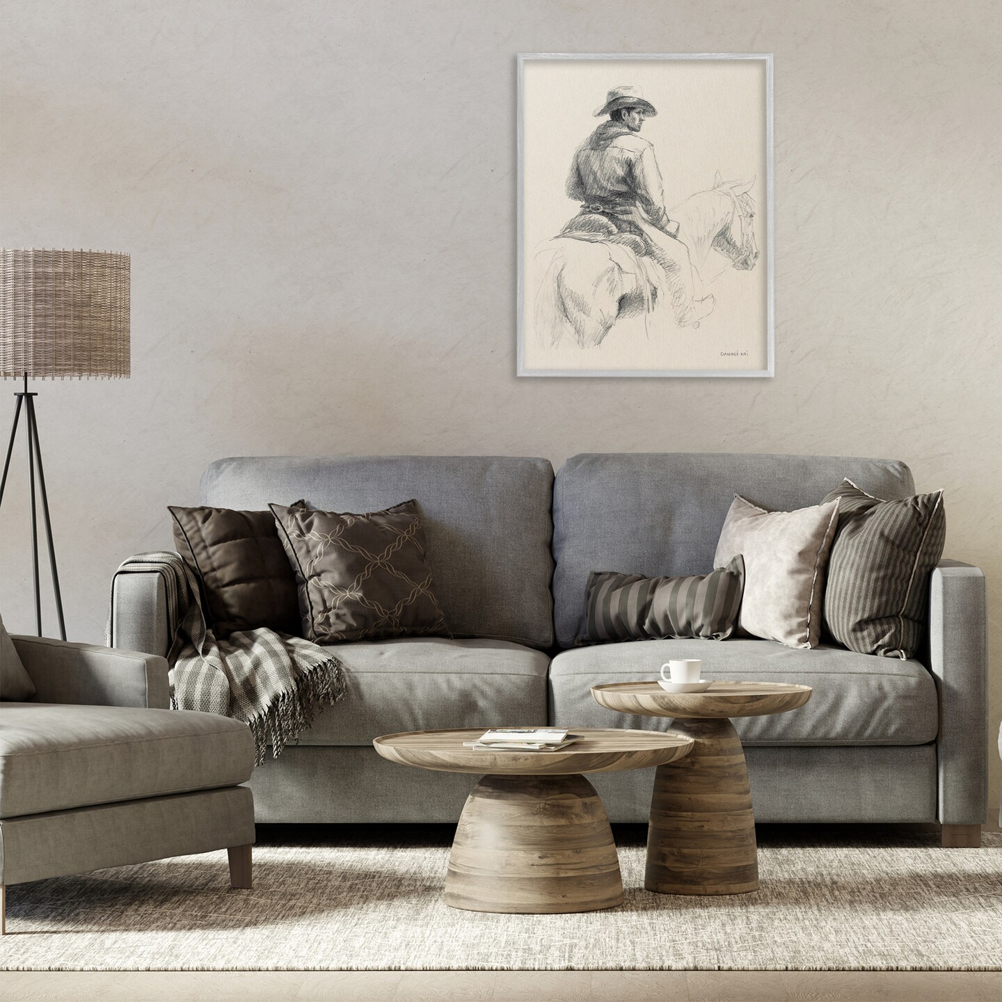 Stupell Industries Cowboy & Horse Sketch Framed Giclee Wall Art Design by Danhui Nai