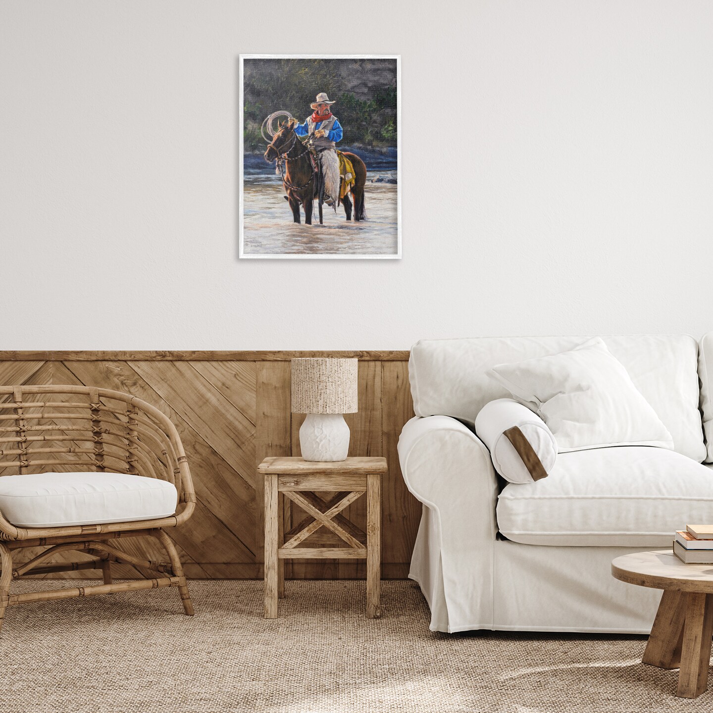 Stupell Industries Cowboy & River Passage Framed Giclee Wall Art Design by David Graham