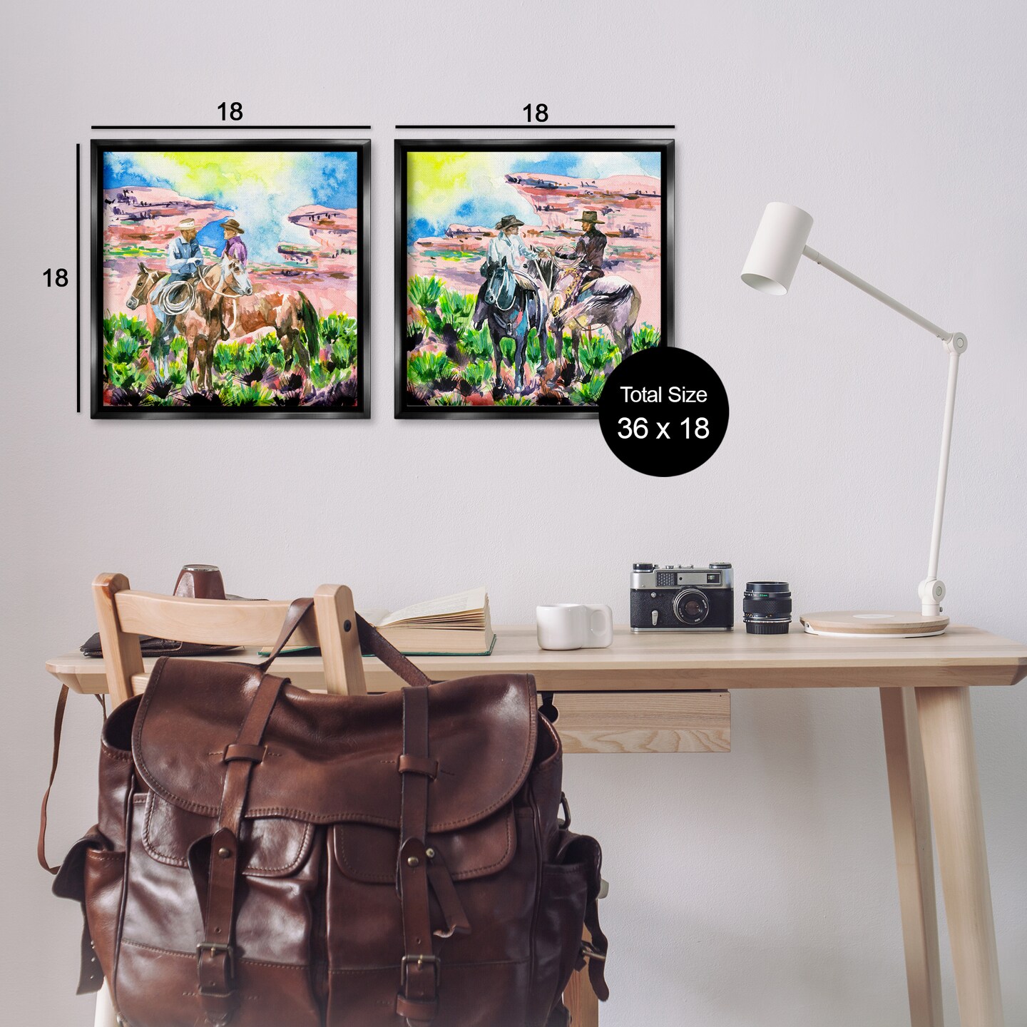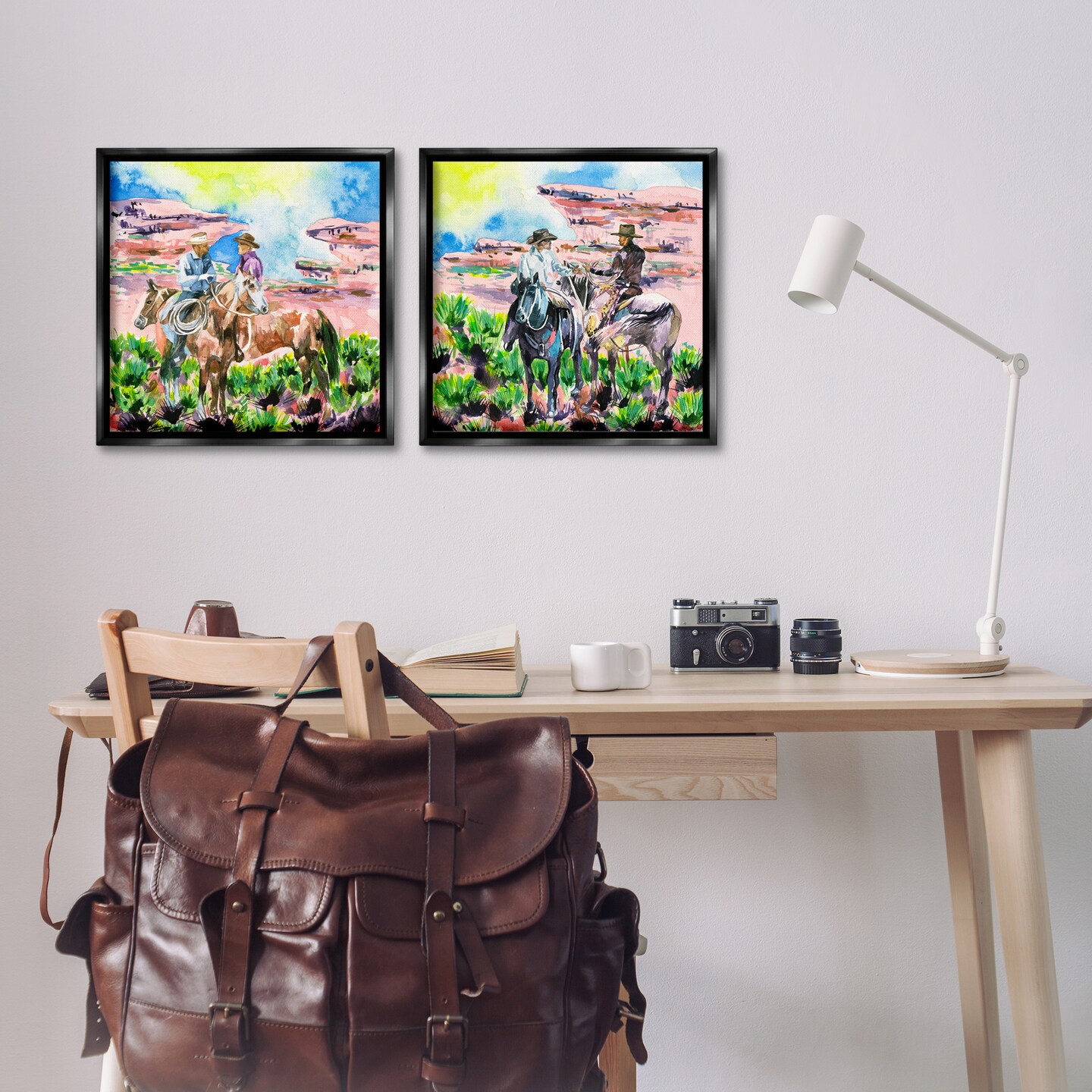 Stupell Industries Cowboys Under Western Sun 2pc Floater Framed Canvas Wall Art Set Design by Melissa Wang