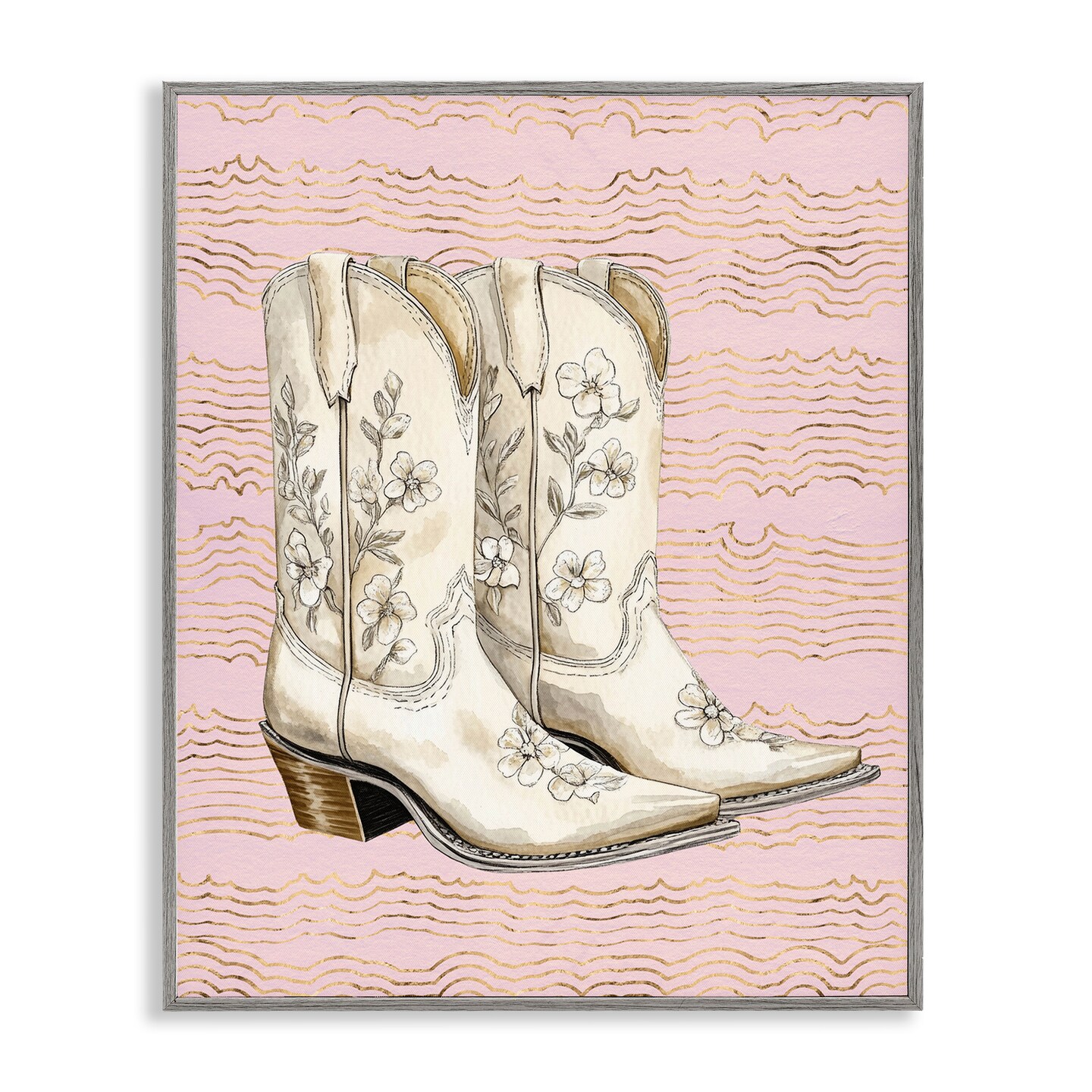 Stupell Industries Cowgirl Boots in White Framed Giclee Wall Art Design by Lettered and Lined