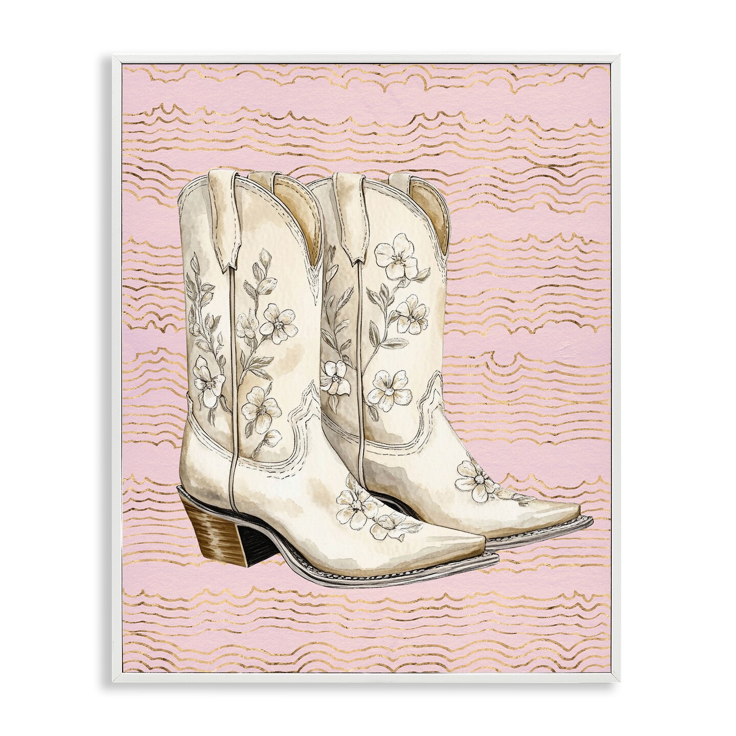 Stupell Industries Cowgirl Boots in White Framed Giclee Wall Art Design by Lettered and Lined