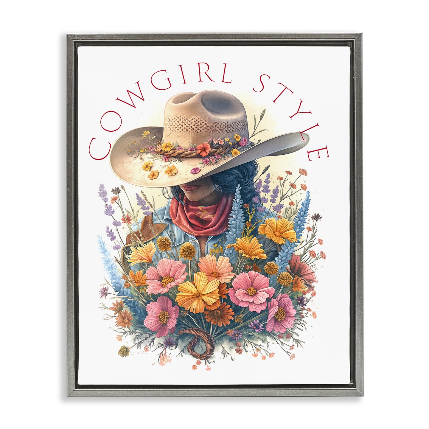 Stupell Industries Cowgirl Style with Florals Framed Floater Canvas Wall Art Design by Steve Hunziker