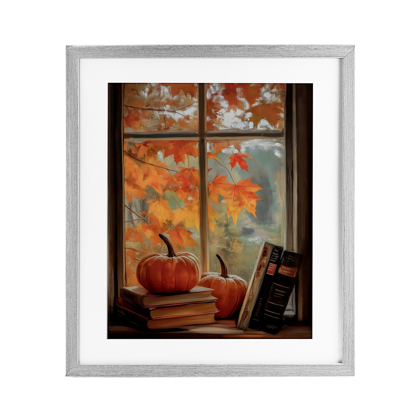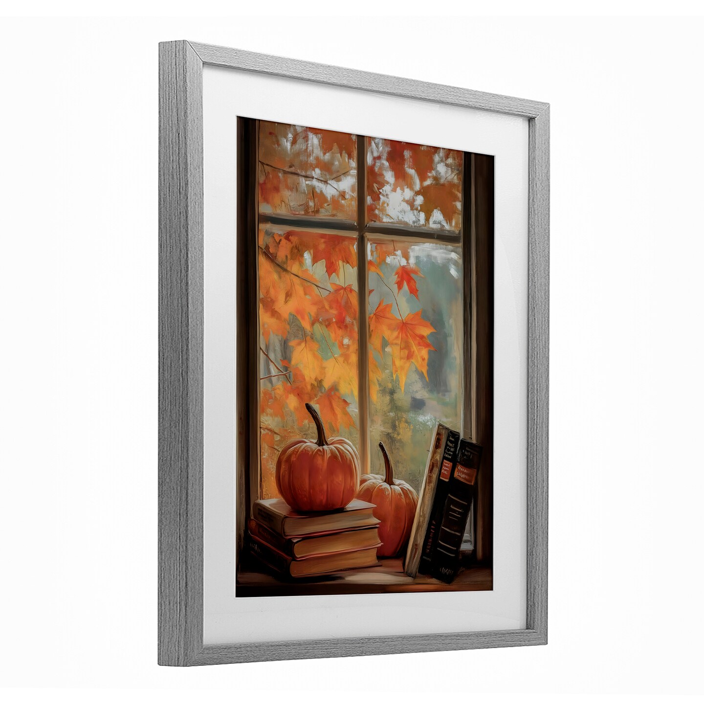 Stupell Industries Cozy Fall Window Books Framed Print Under Glass, design by Arlington Prints