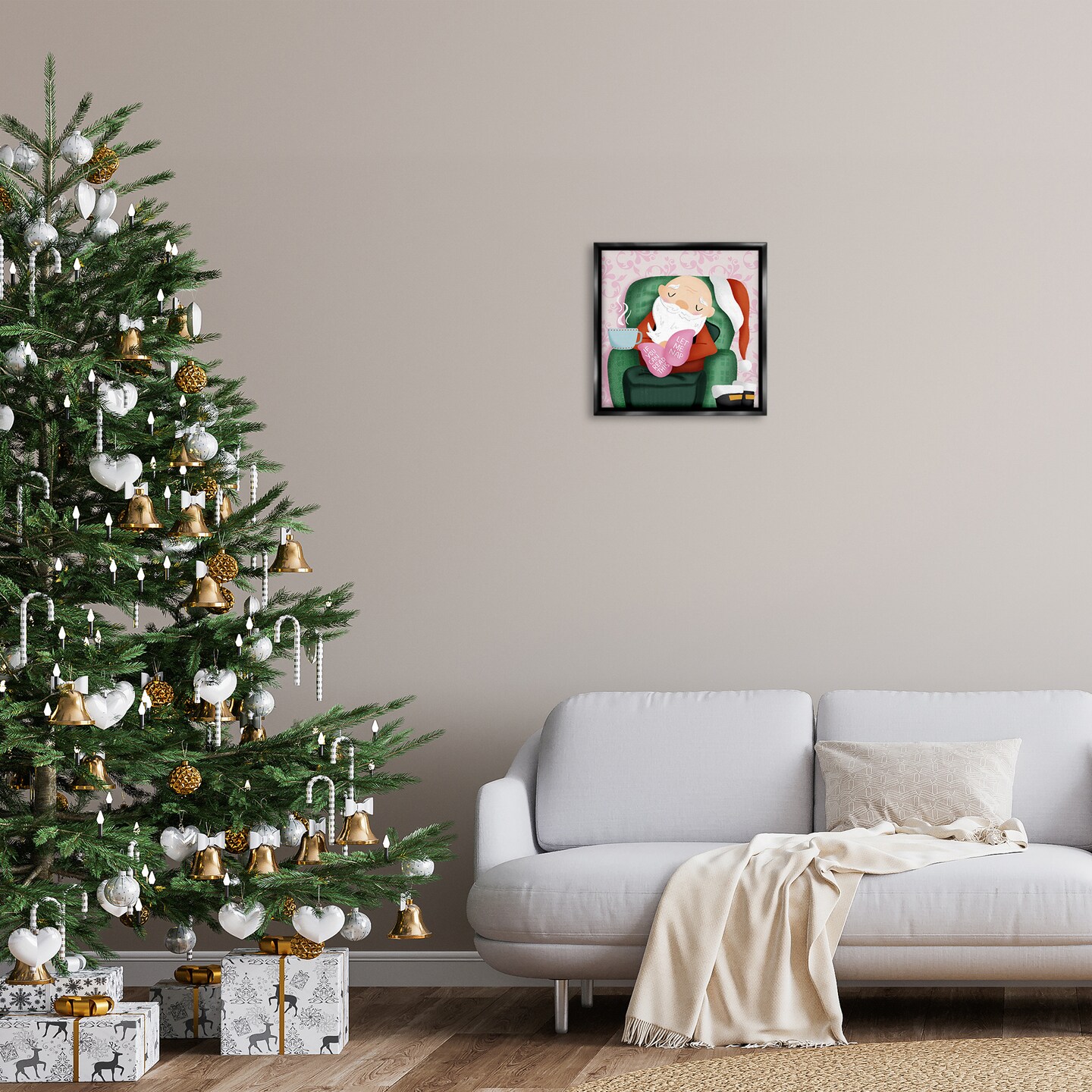 Stupell Industries Cozy Sleeping Santa Claus Floating Frame Design by Sarah Hickman
