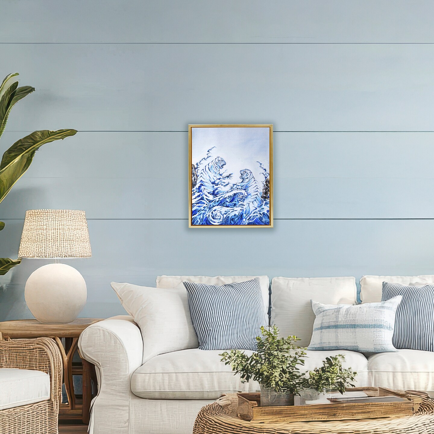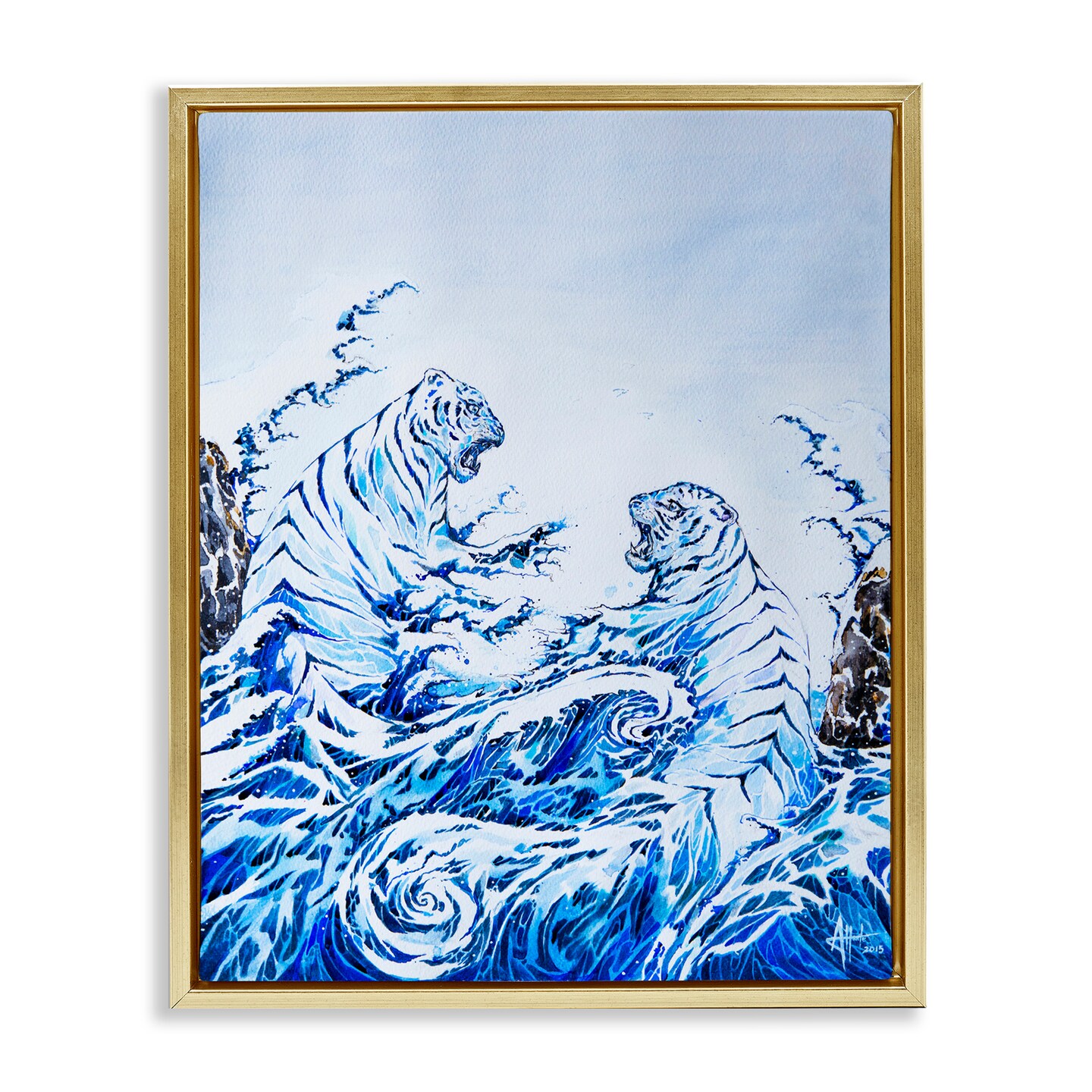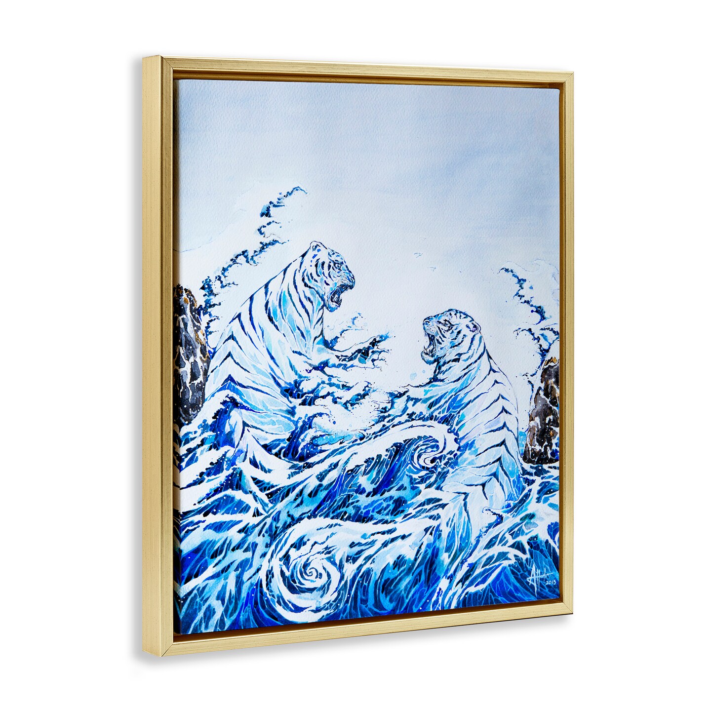 Stupell Industries Crashing Waves Tigers Floating Frame, design by Marc Allante