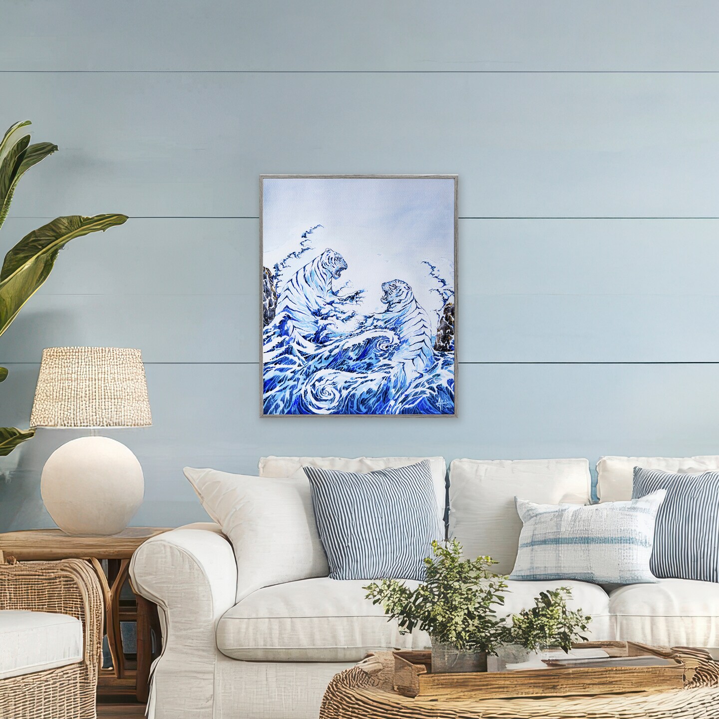 Stupell Industries Crashing Waves Tigers Framed Giclee, design by Marc Allante
