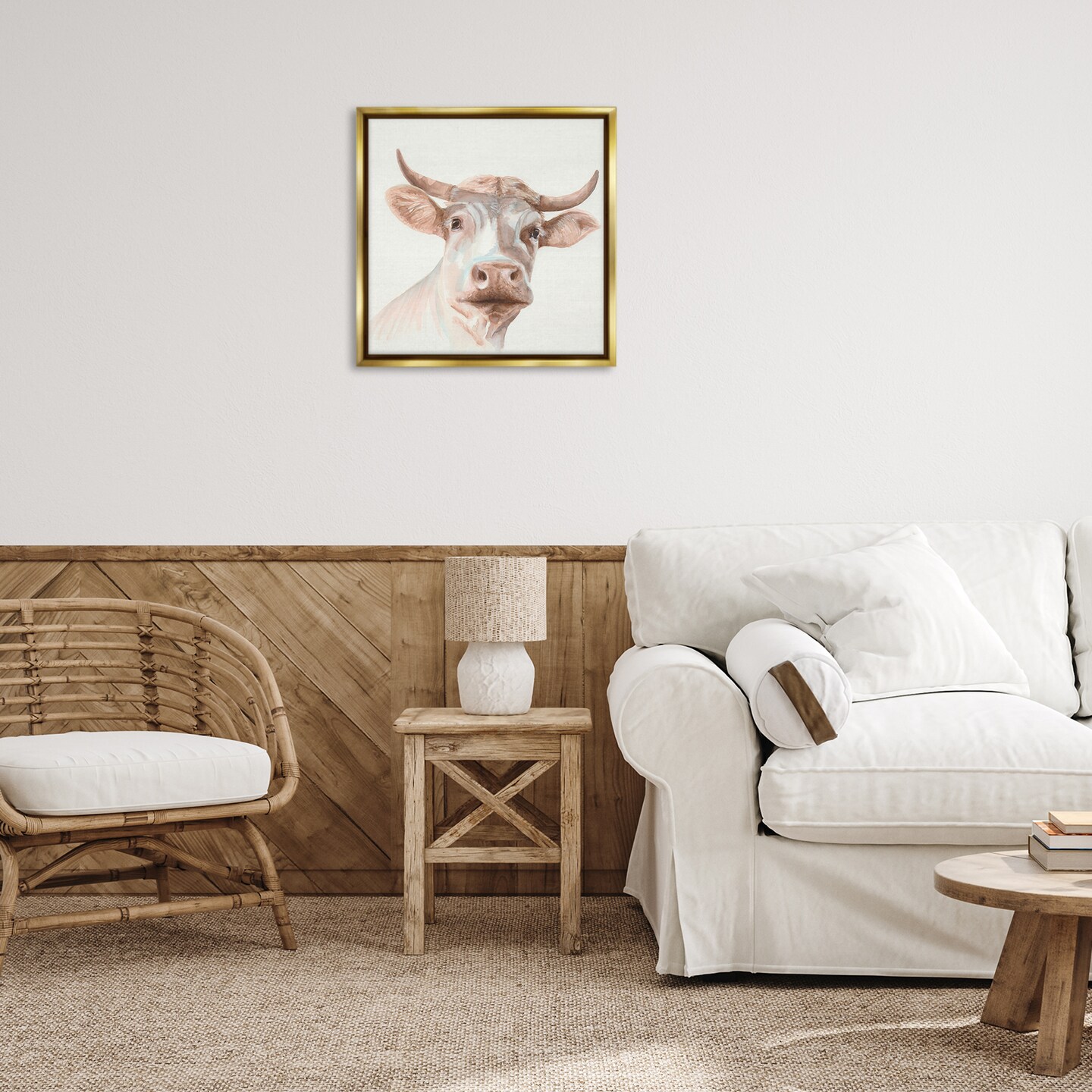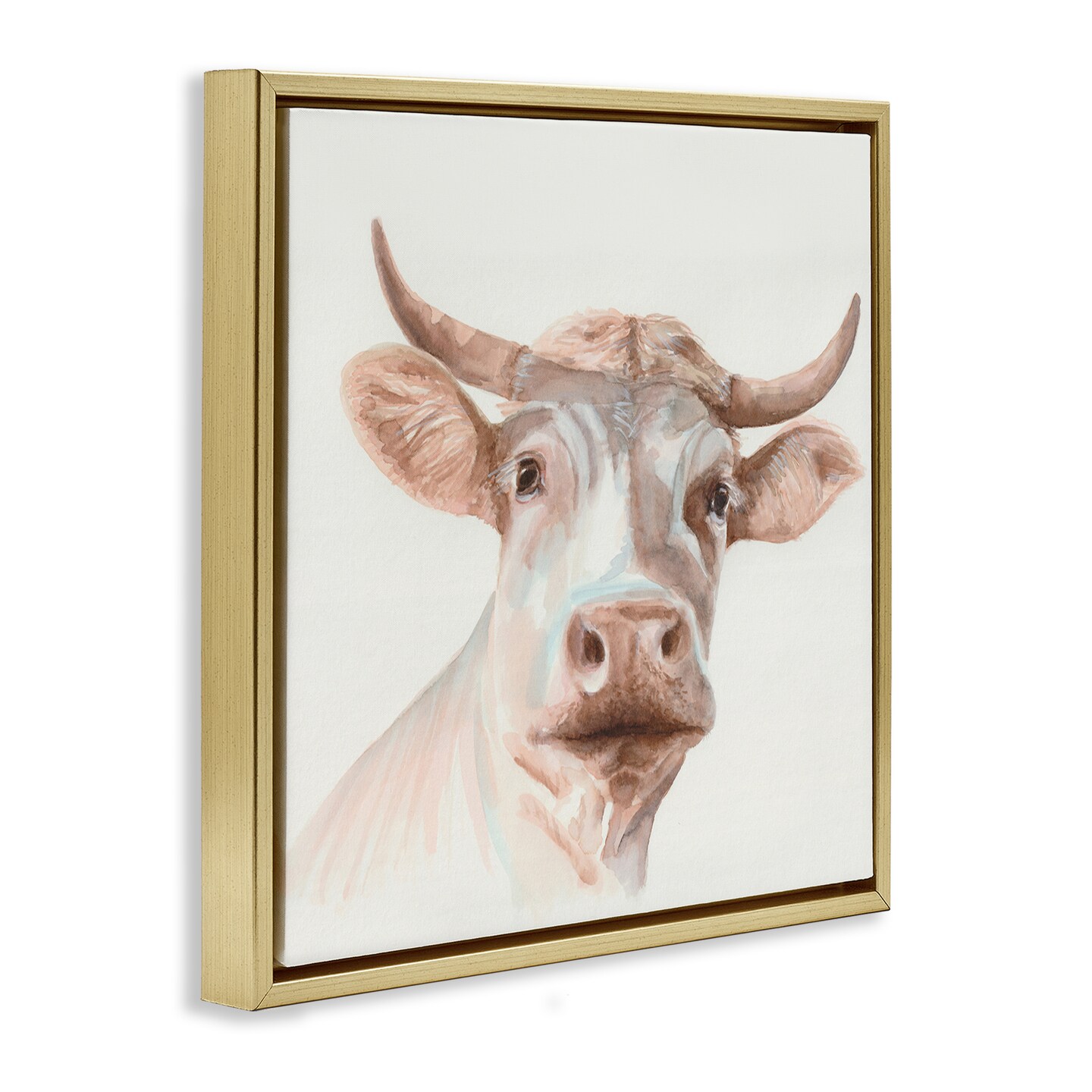 Stupell Industries Cream Beige Cow Framed Floater Canvas Wall Art Design by Errico & Slyp