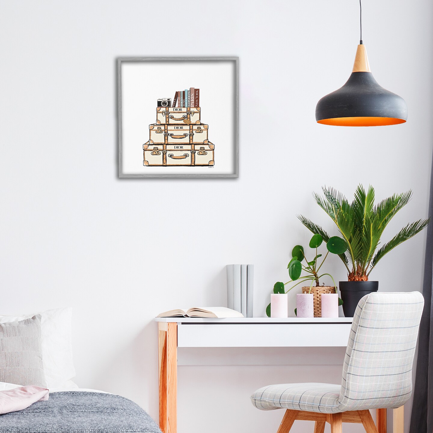 Stupell Industries Cream Luggage Stack Framed Giclee, design by Amanda Greenwood
