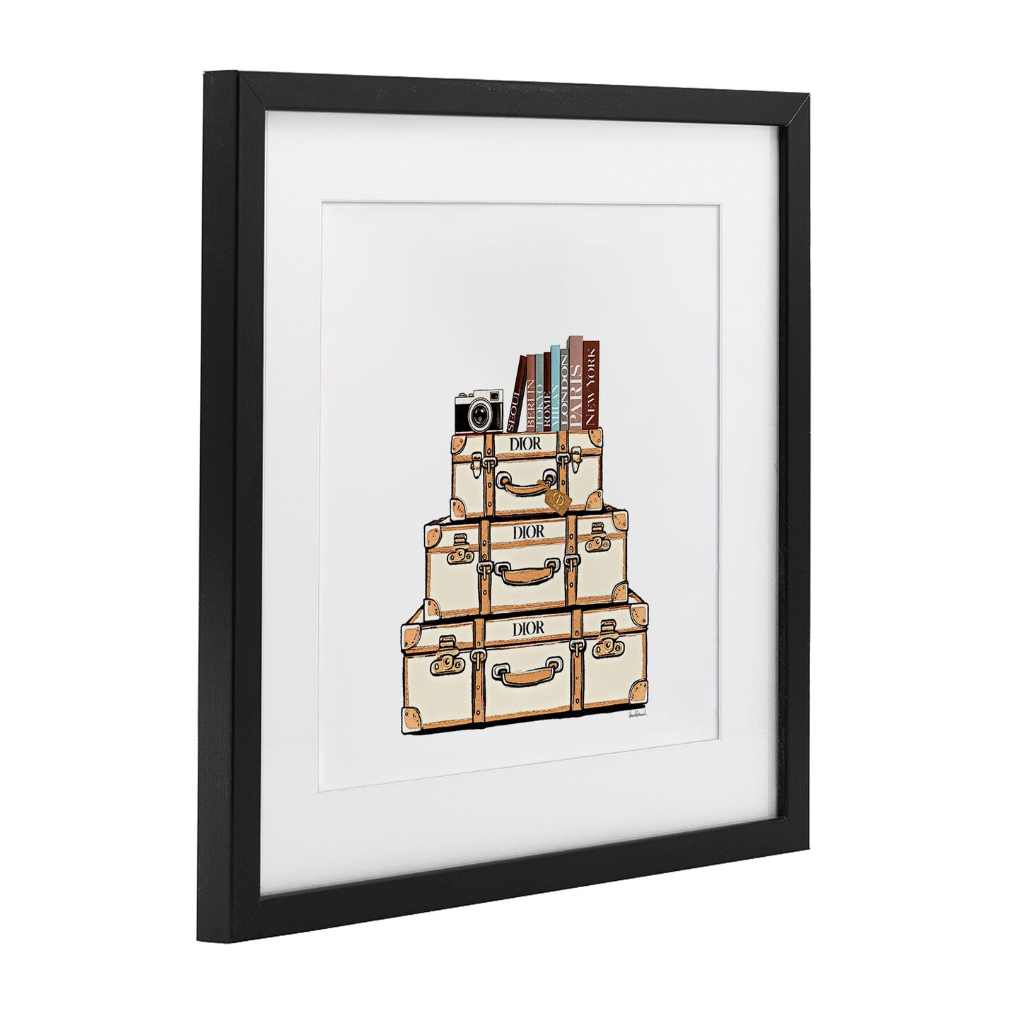 Stupell Industries Cream Luggage Stack Framed Print Under Glass, design by Amanda Greenwood