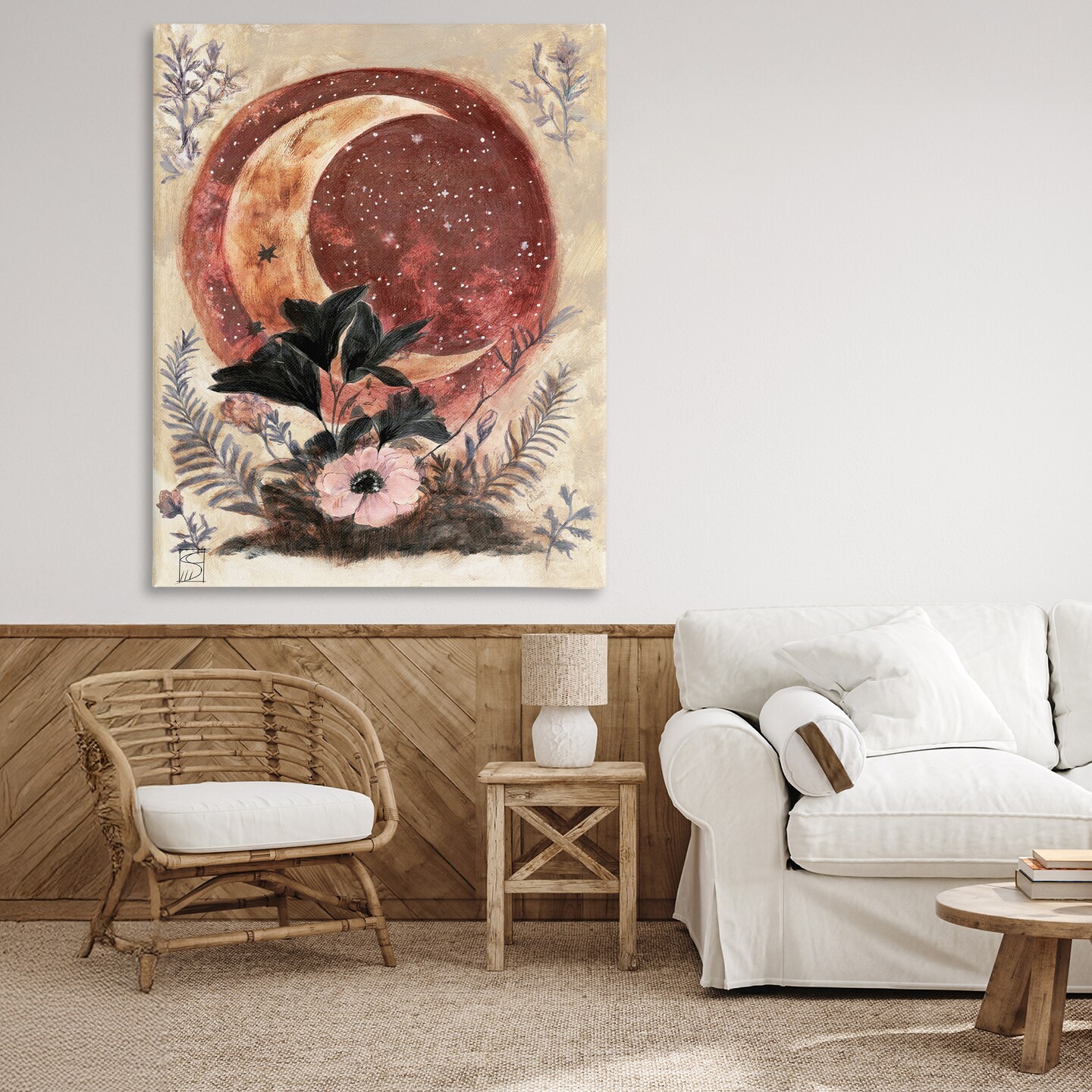 Stupell Industries Crescent Moon & Florals Canvas, design by Sara Culpepper