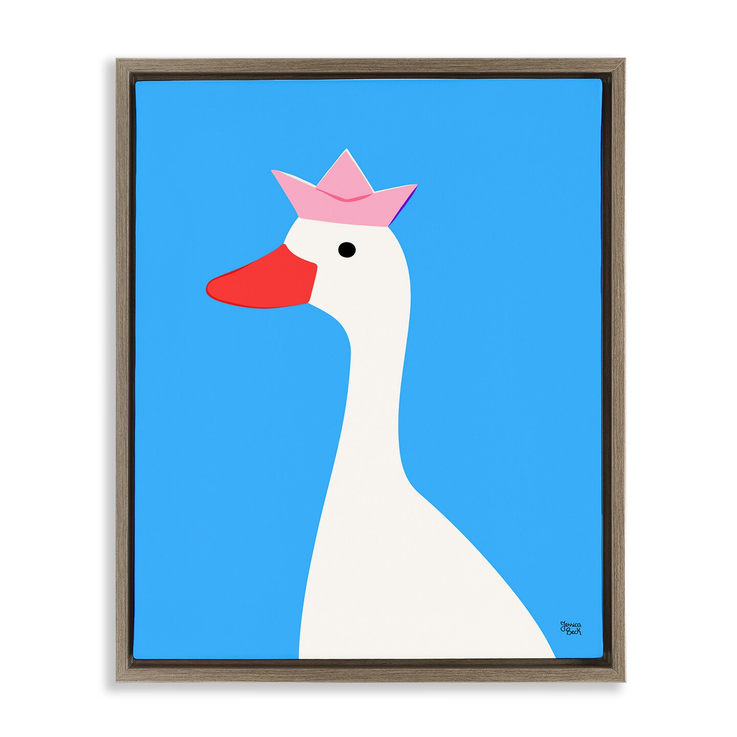 Stupell Industries Crowned Goose on Blue Framed Floater Canvas Wall Art Design by Jessica Beck