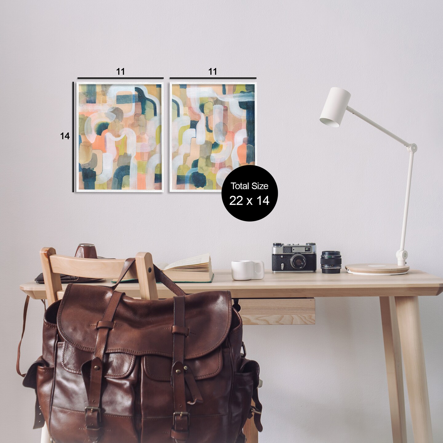 Stupell Industries Curved Retro Abstraction 2pc Framed Giclee Wall Art Set Design by Grace Popp