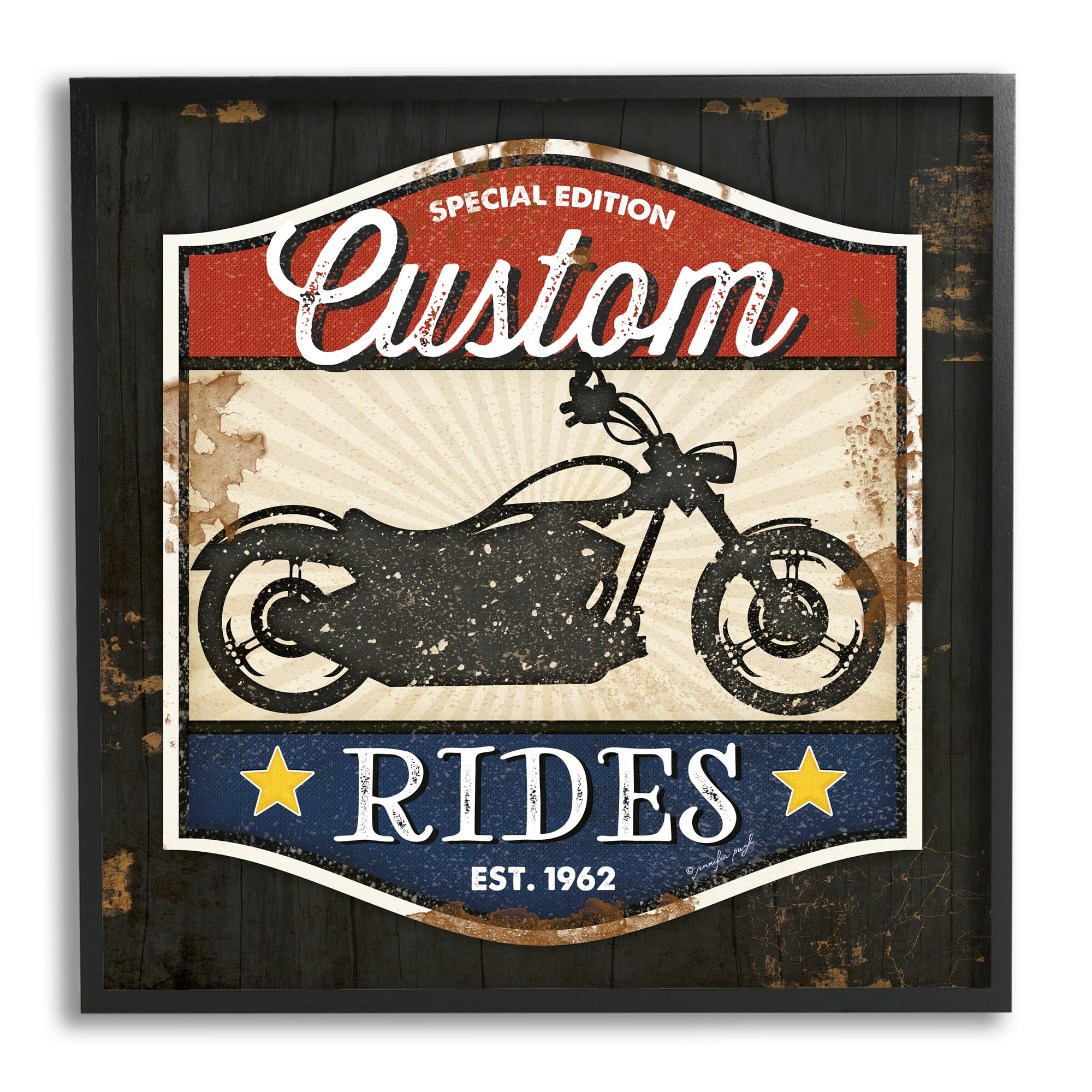 Stupell Industries Custom Rides Motorcycle Sign Vintage Americana Bike in Black Frame Wall Art