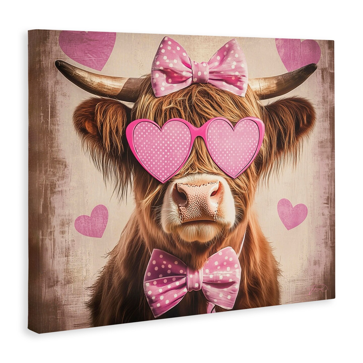 Stupell Industries Cute Cattle Pink Hearts Canvas, design by Shawna Stewart