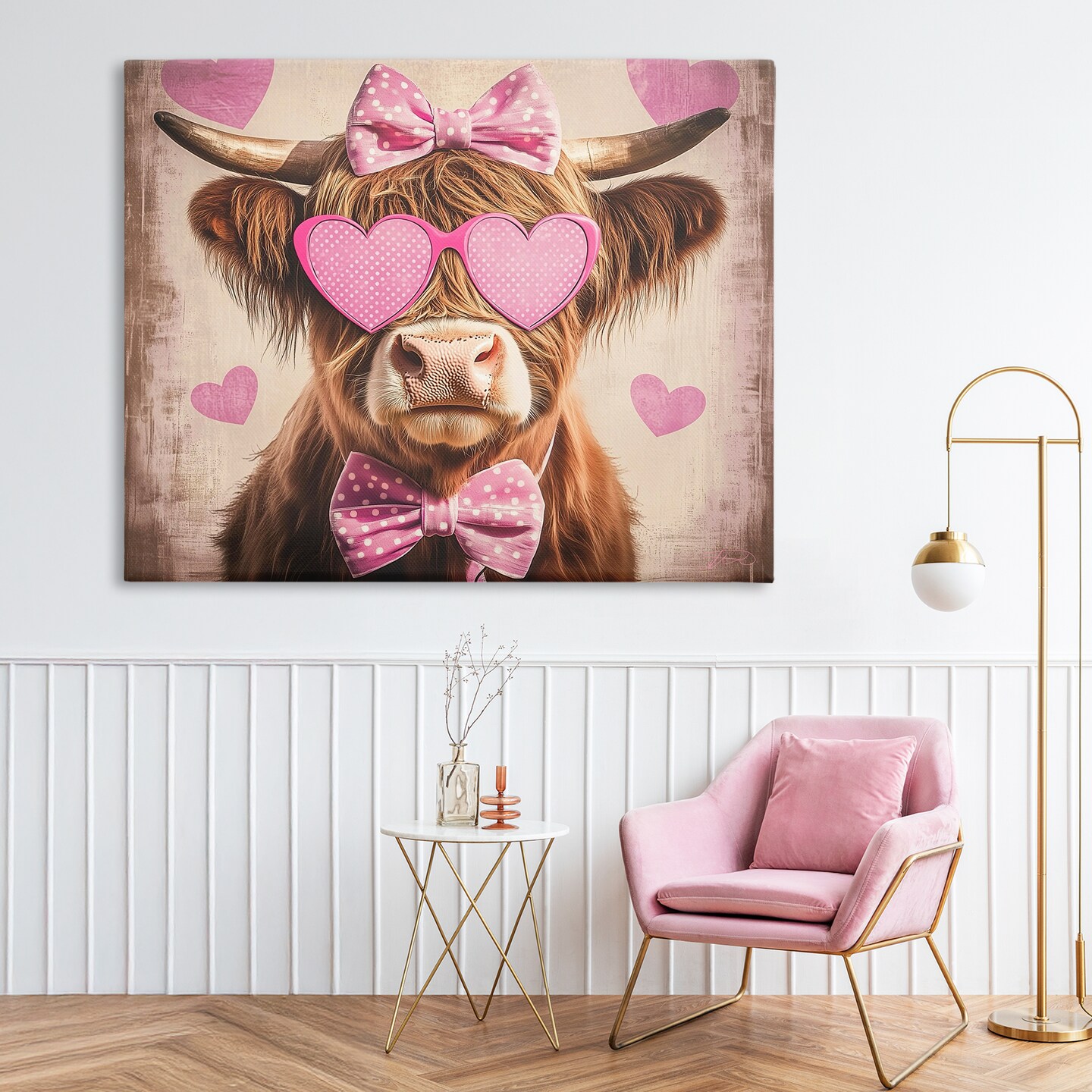 Stupell Industries Cute Cattle Pink Hearts Canvas, design by Shawna Stewart