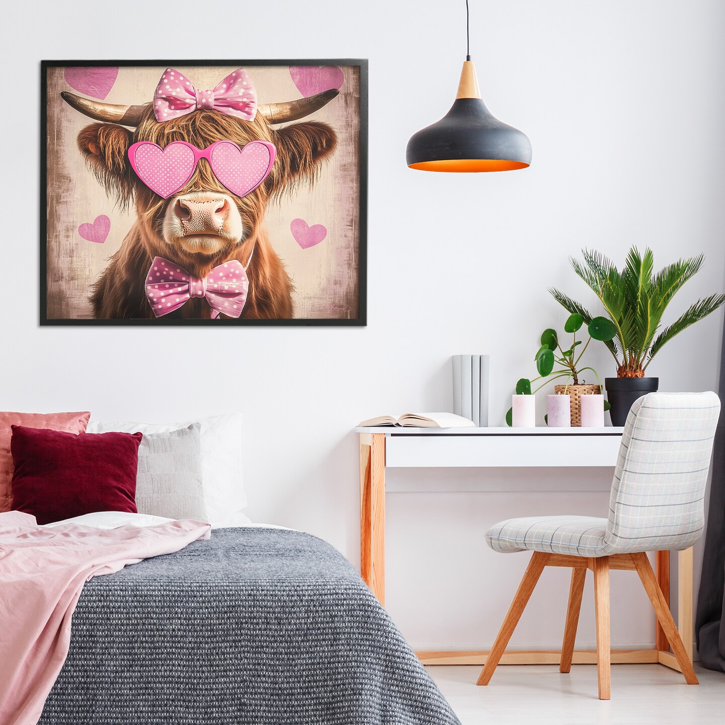 Stupell Industries Cute Cattle Pink Hearts Framed Giclee, design by Shawna Stewart